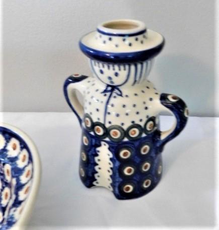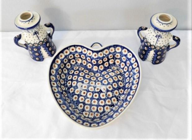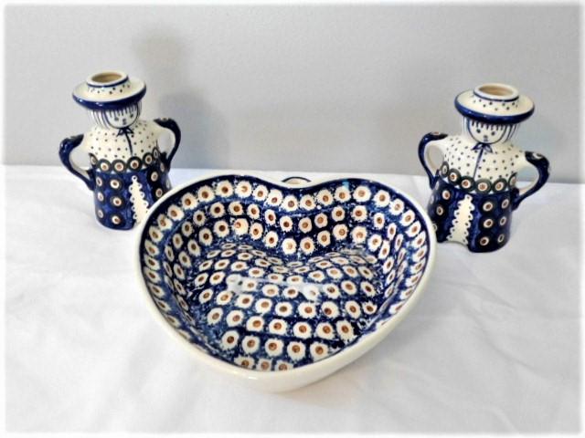 Polish Ceramic Candle Holder Set and Heart Shaped Serving Bowl