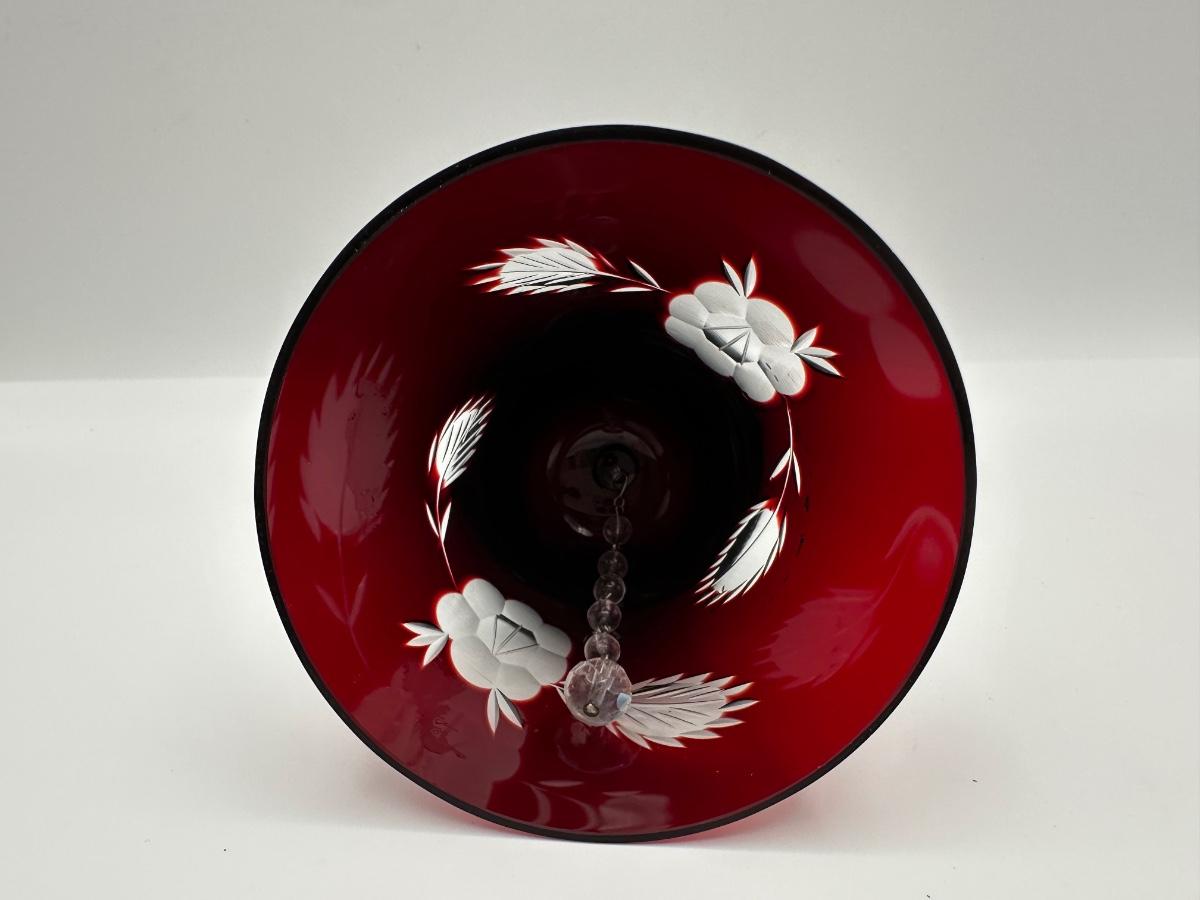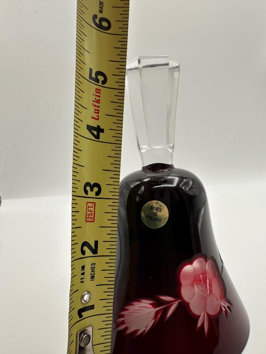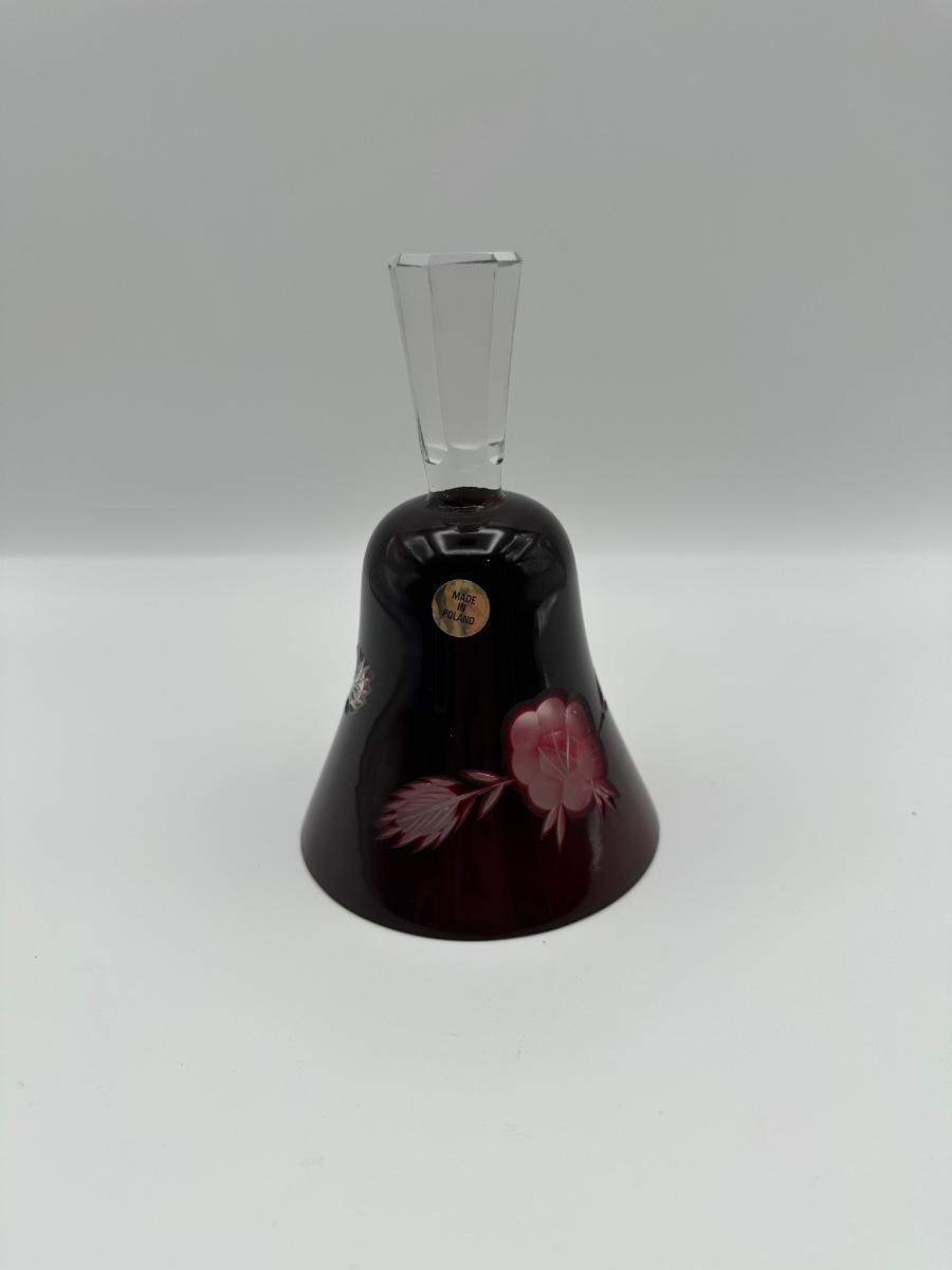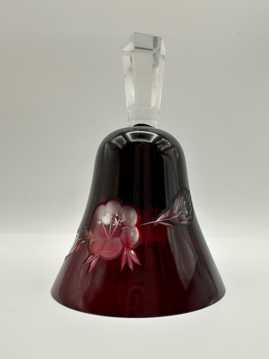 Polish Cut-to-Clear Ruby Red Crystal Bell with Floral Design