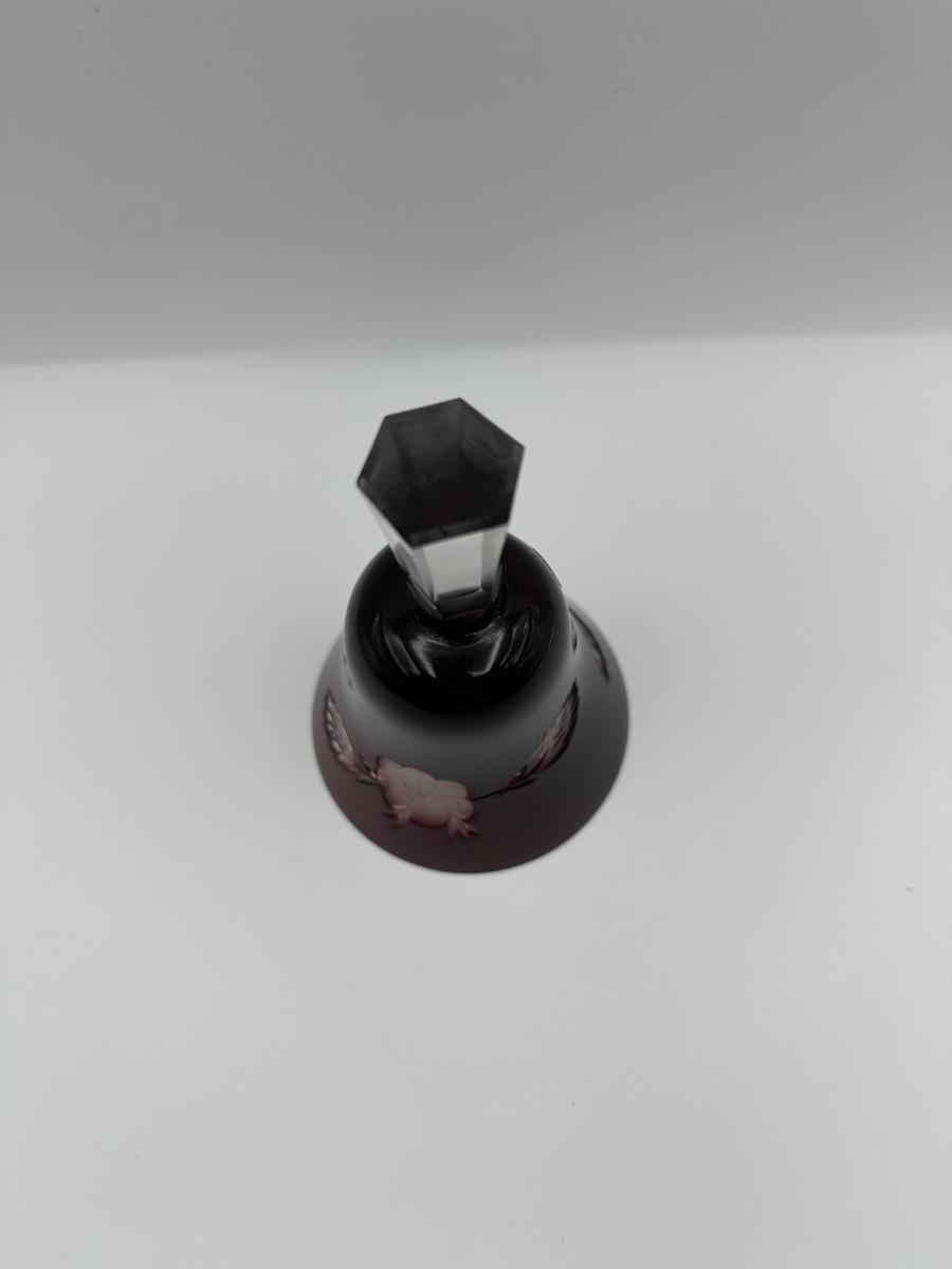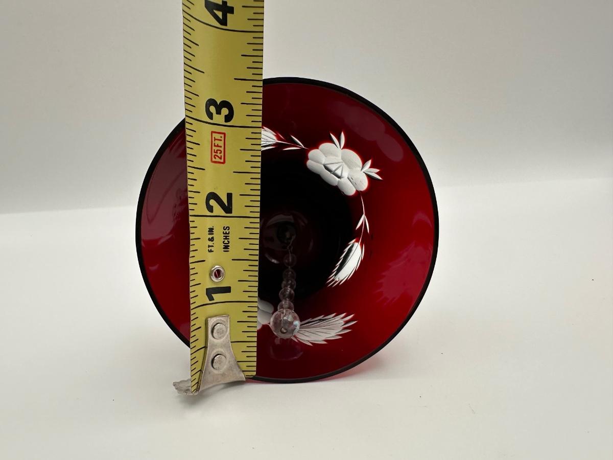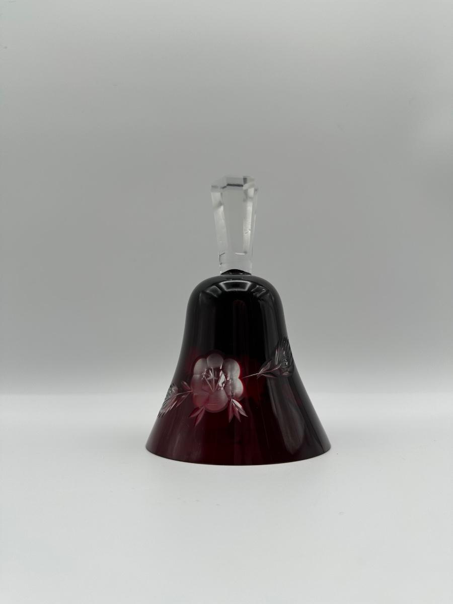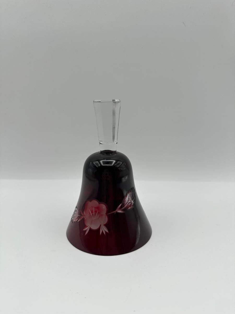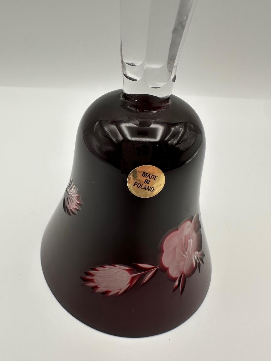 Polish Cut-to-Clear Ruby Red Crystal Bell with Floral Design