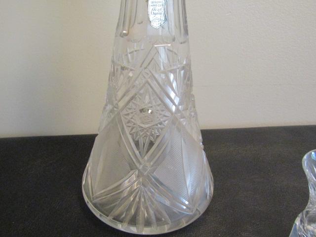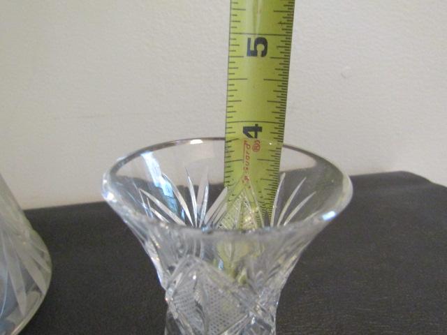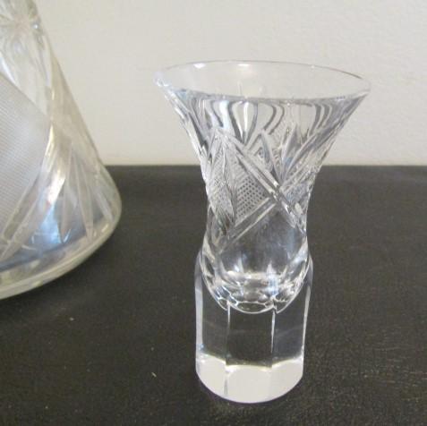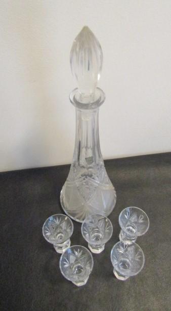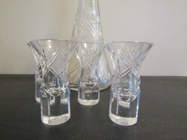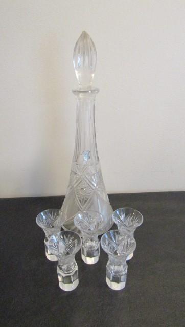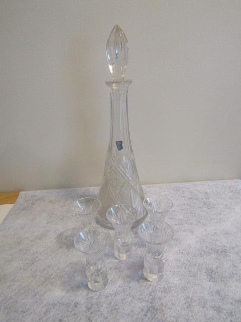 Polish Handcut Crystal Beverage Decanter (16" Tall) and 5 Glasses (4" Tall)