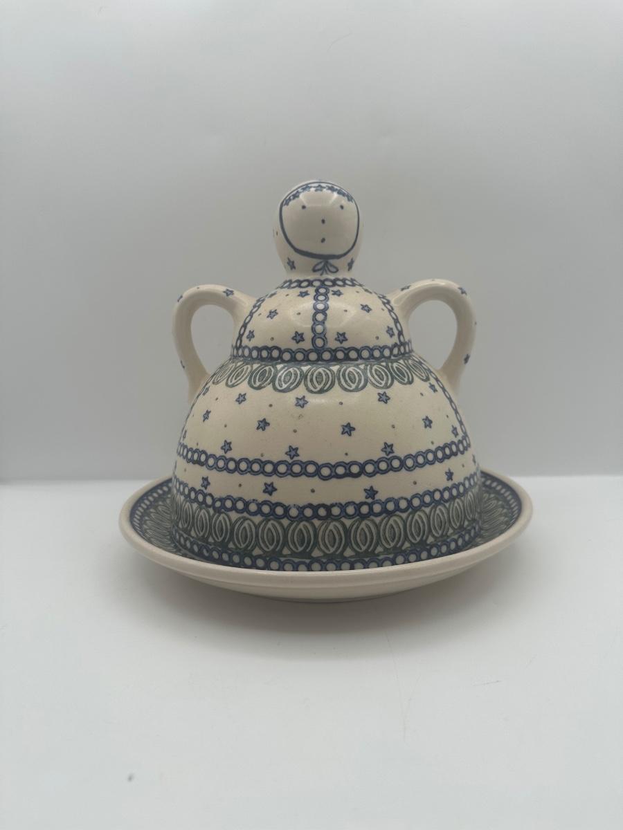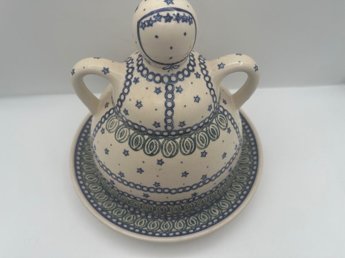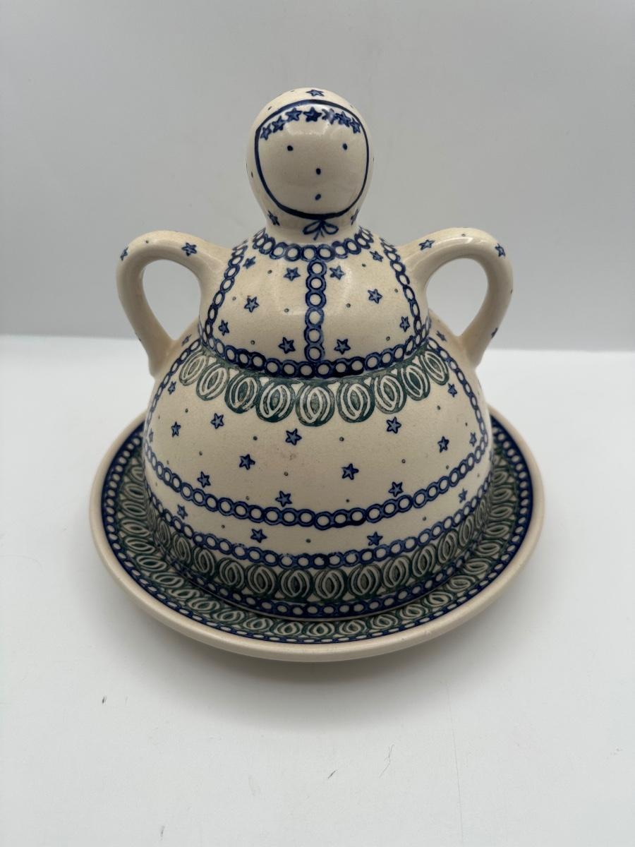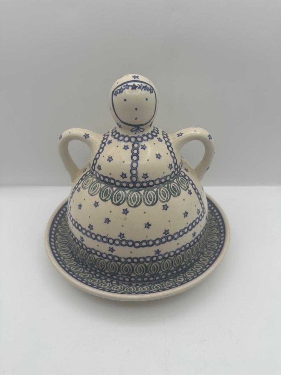 Polish Pottery Cheese Butter Lady Round Covered Dish