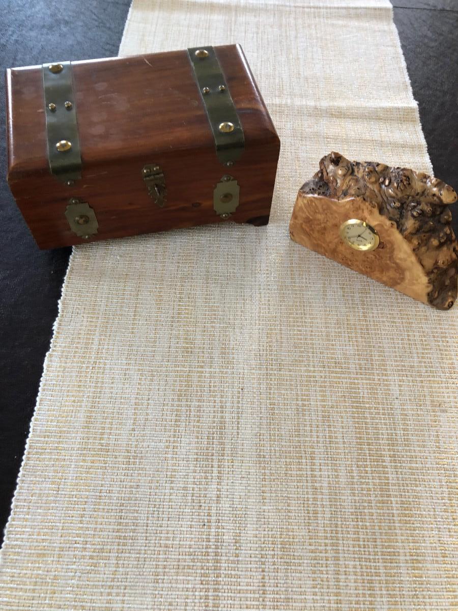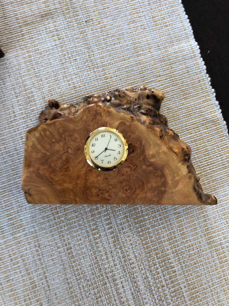 POLISHED BURLWOOD CLOCK AND SMALL CHEST