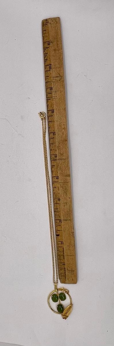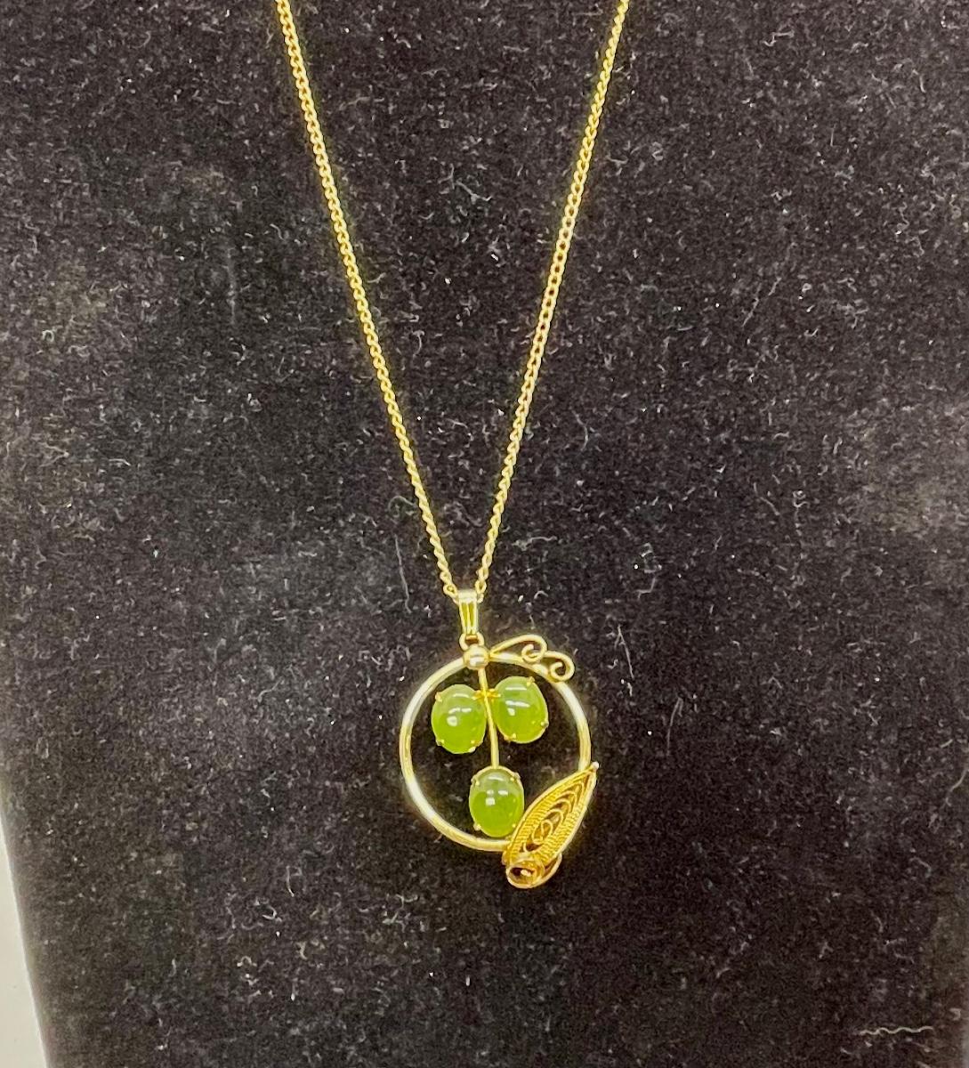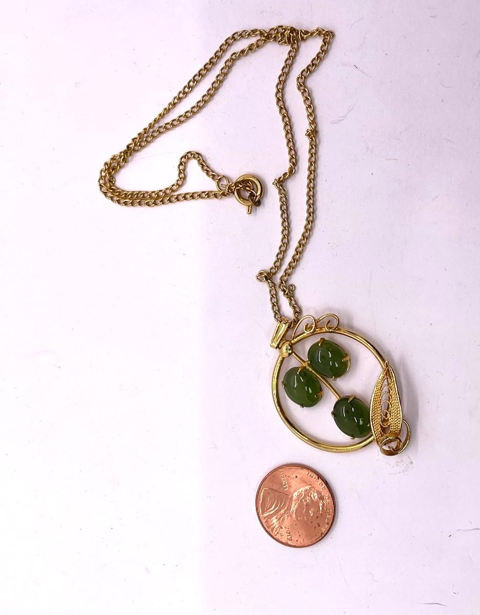Polished Jade and Gold Tone Vintage Pendant Necklace. In good condition. No hallmarks or branding.