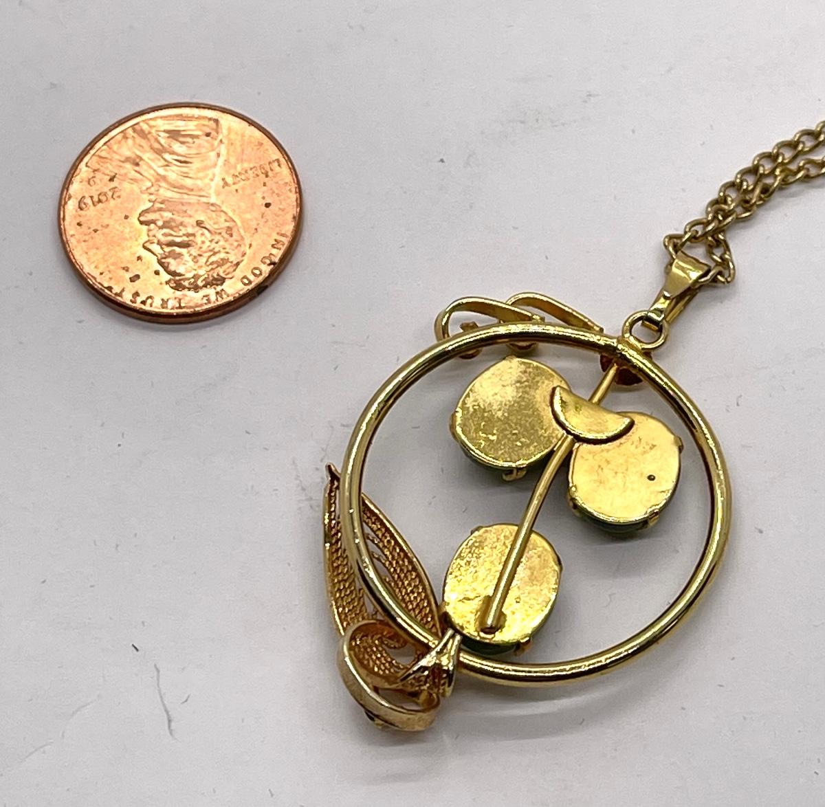 Polished Jade and Gold Tone Vintage Pendant Necklace