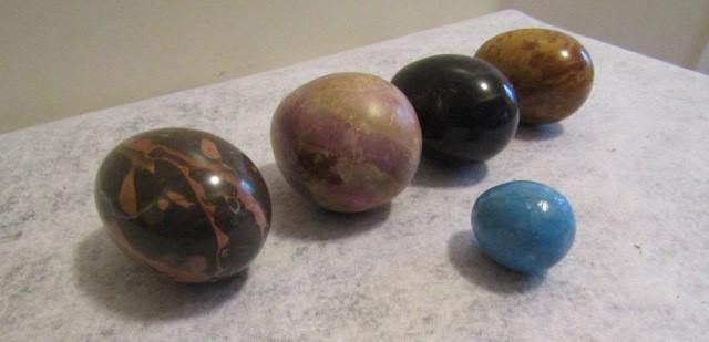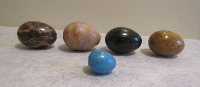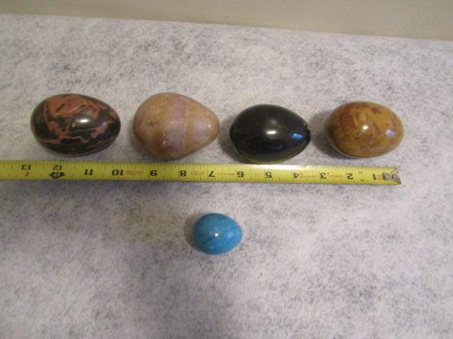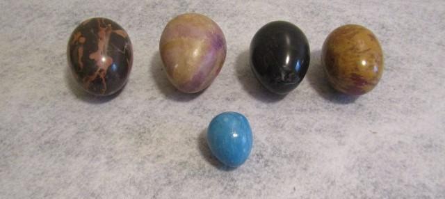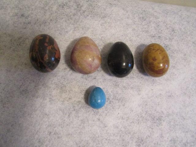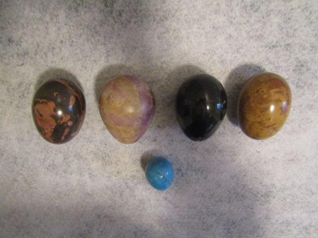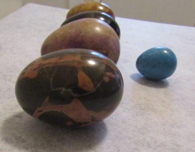Polished Natural Stone 'Eggs'. Large eggs are approx 3", Small blue egg is 1 1/2". Please see pictures.