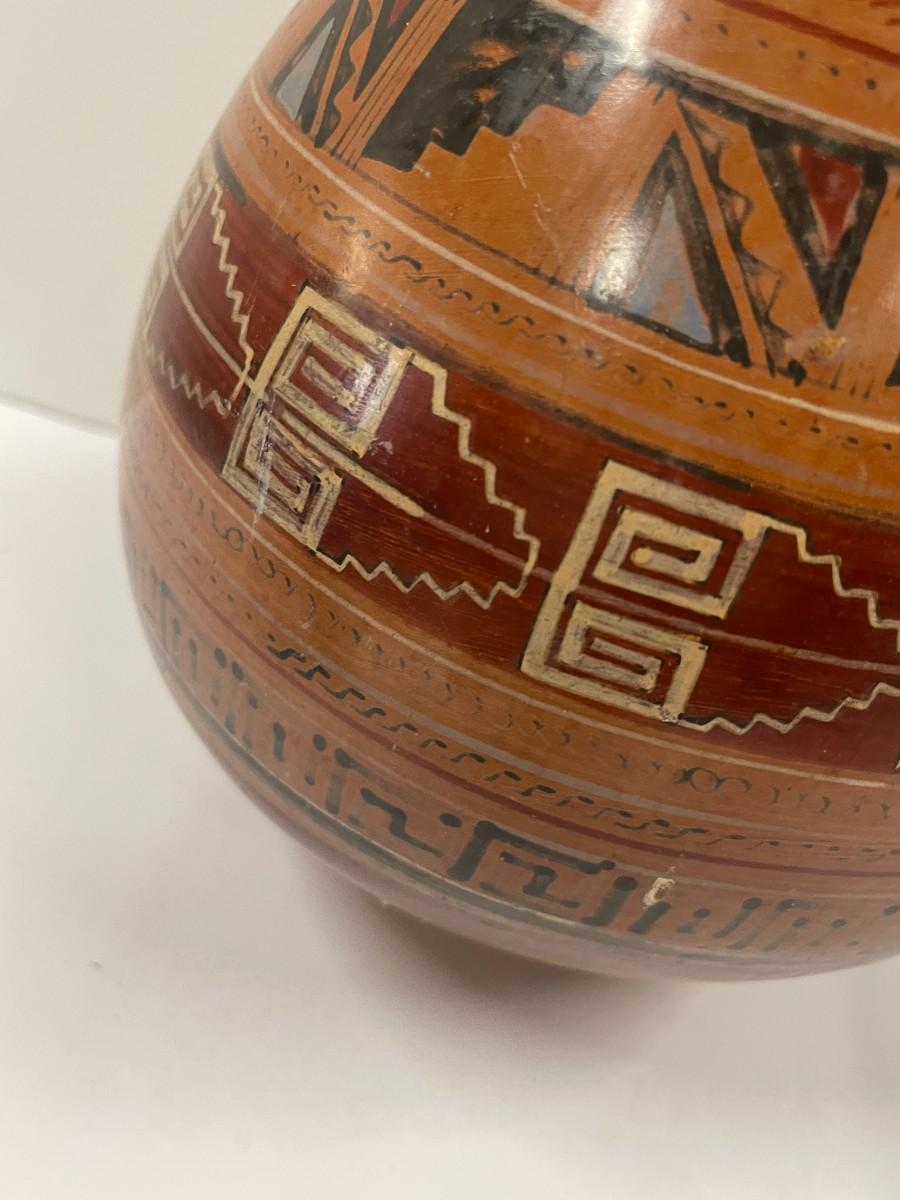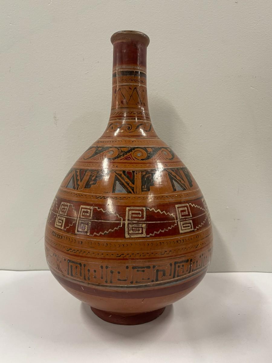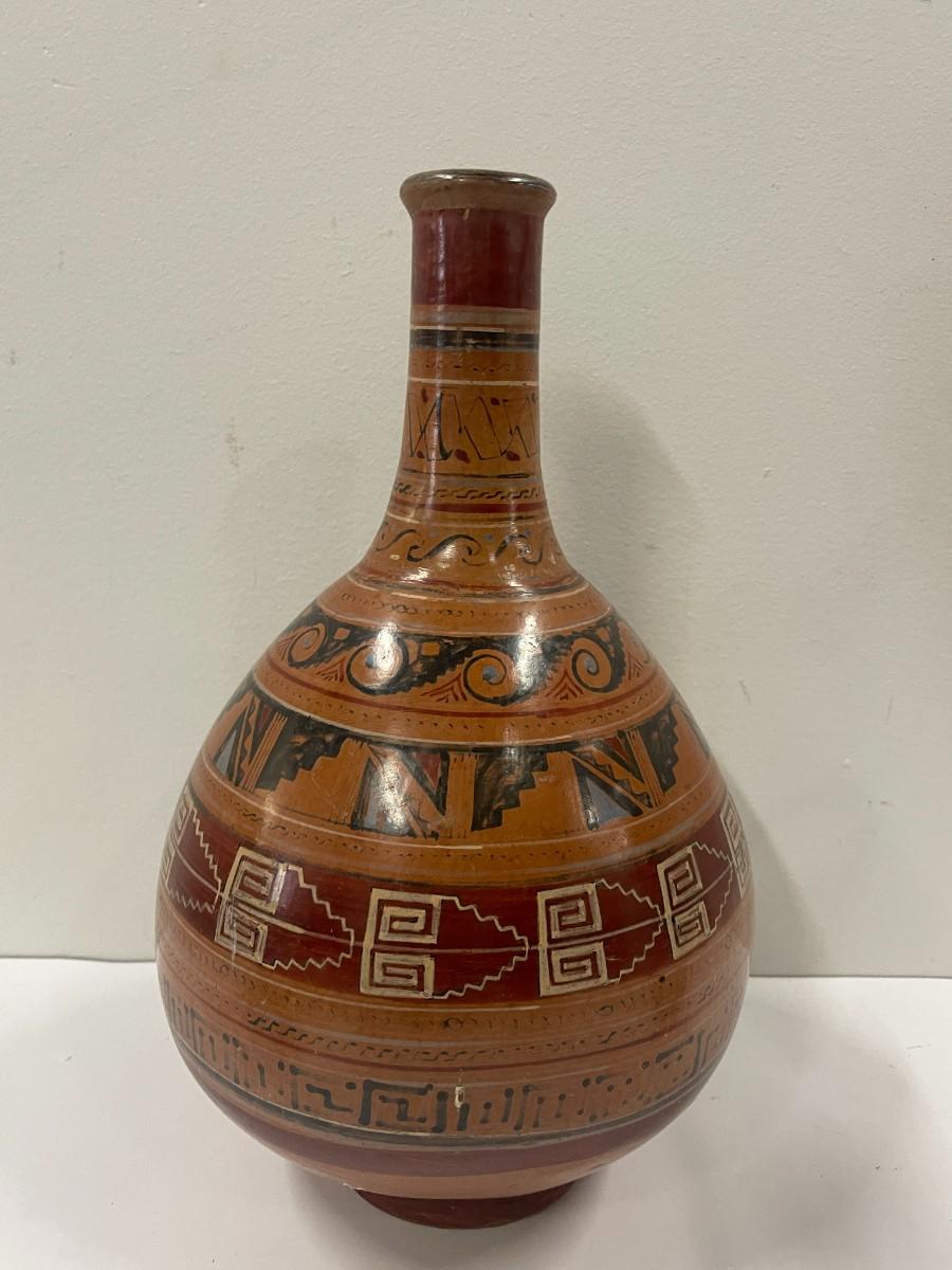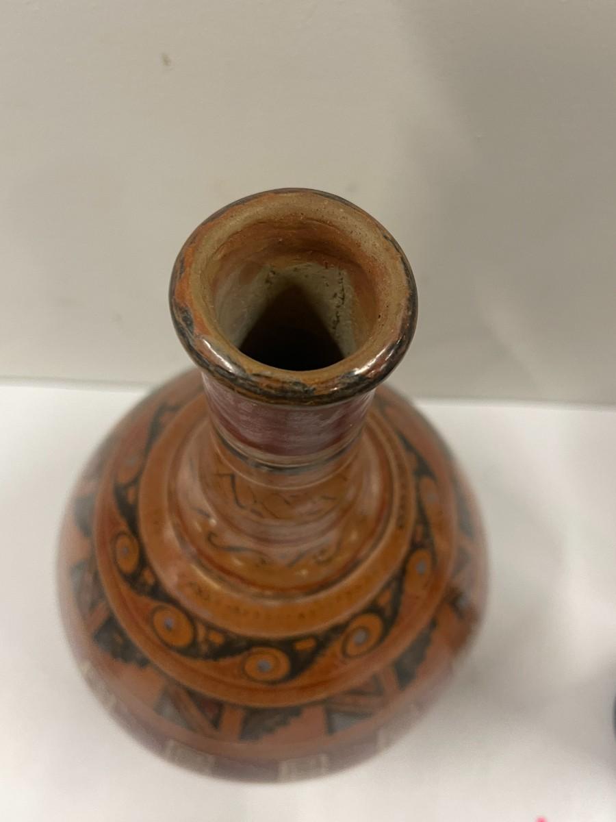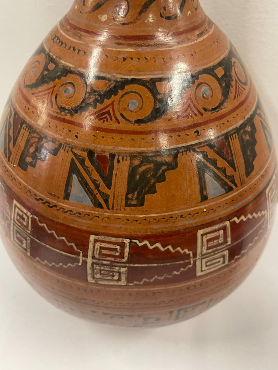 Pottery vase colored with clay colors drawn from the clay banks around Guadalajara Mexico. Excellent condition. Approximately 12 1/2" tall . # 1493