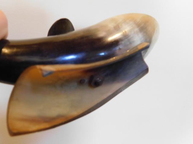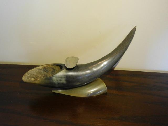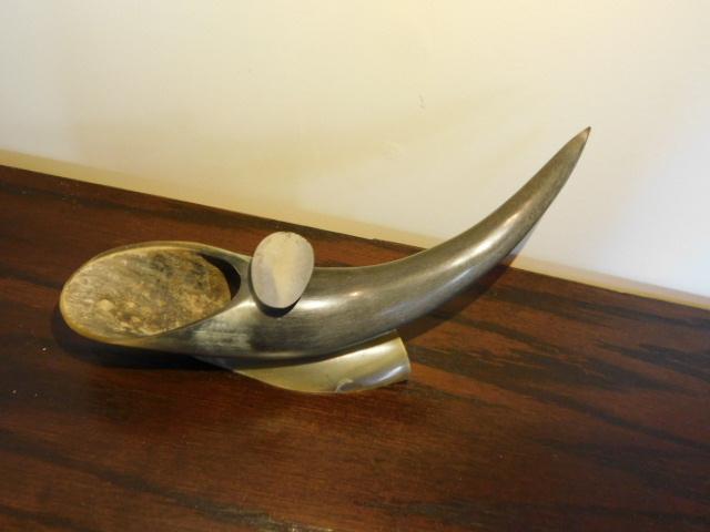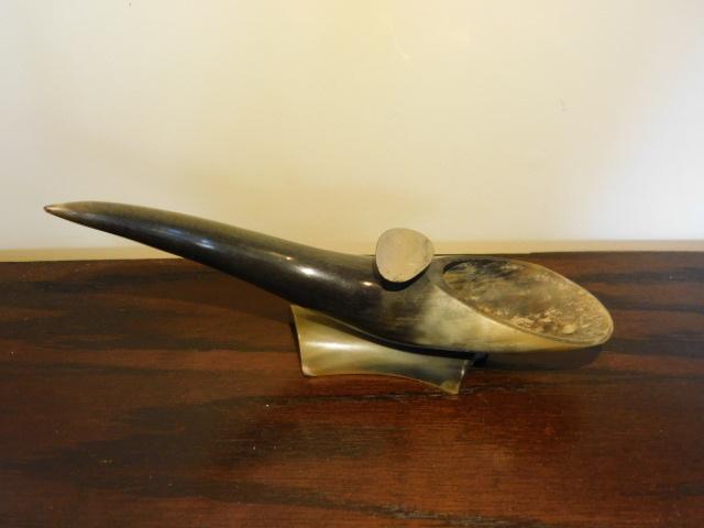 Polished Steer Horn Cigar / Pipe Stand and Ashtray 10". This is a unique item that is sure to please any cigar aficionado. Horn dark gray and cream with no crazing or cracks