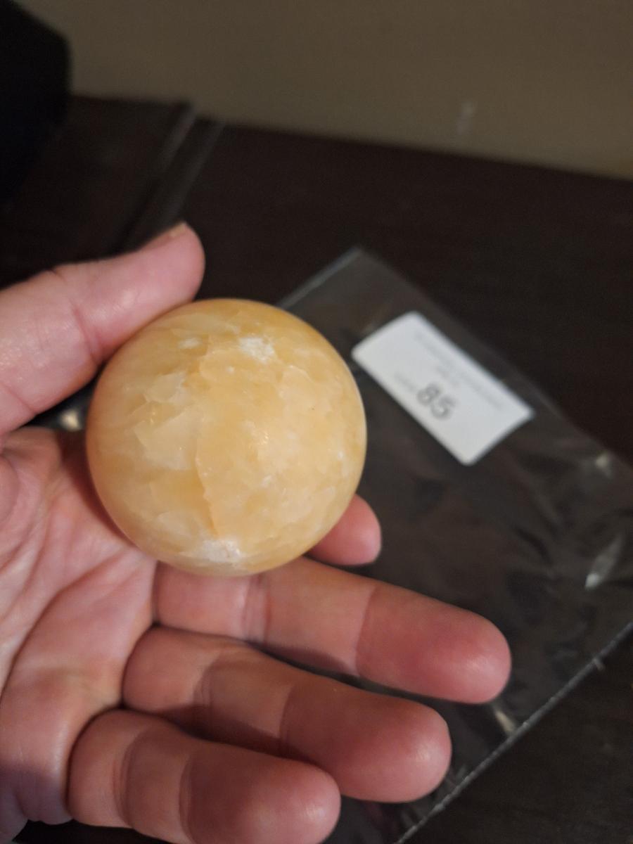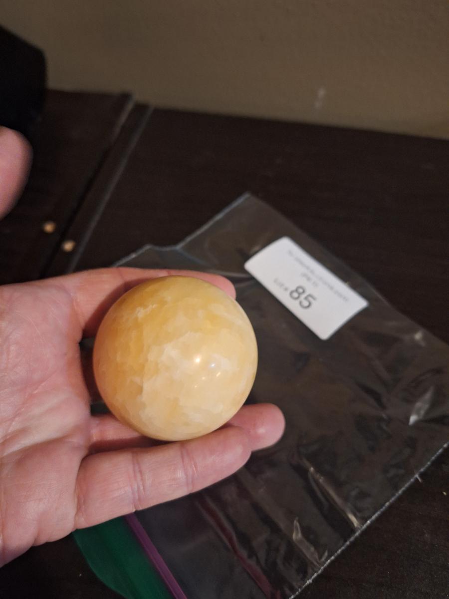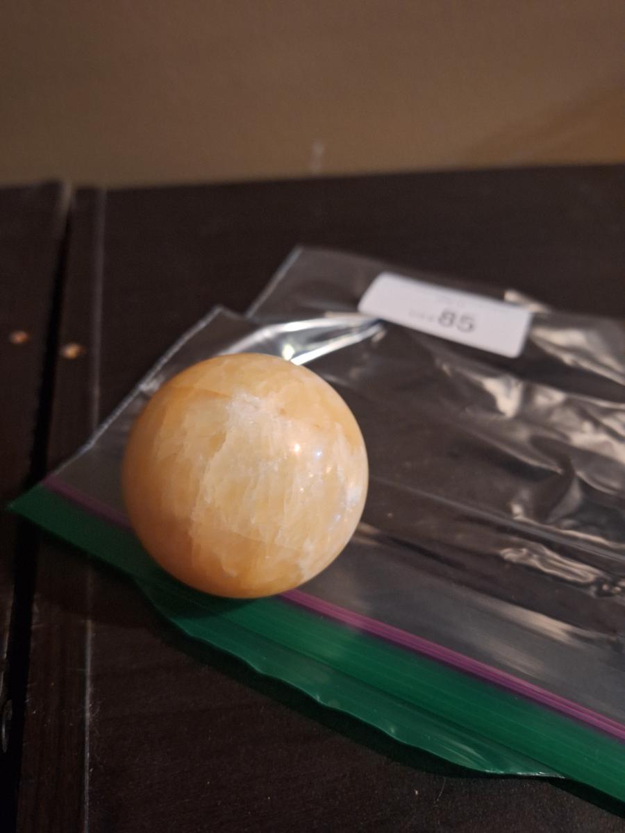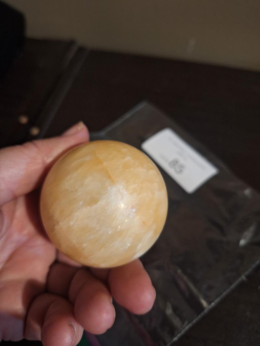 polished stone ball…calcite, onyx…we aren't sure the type of stone.