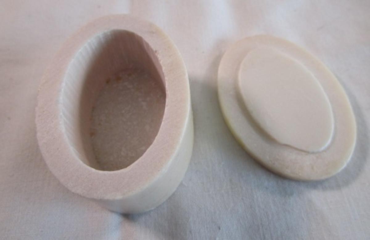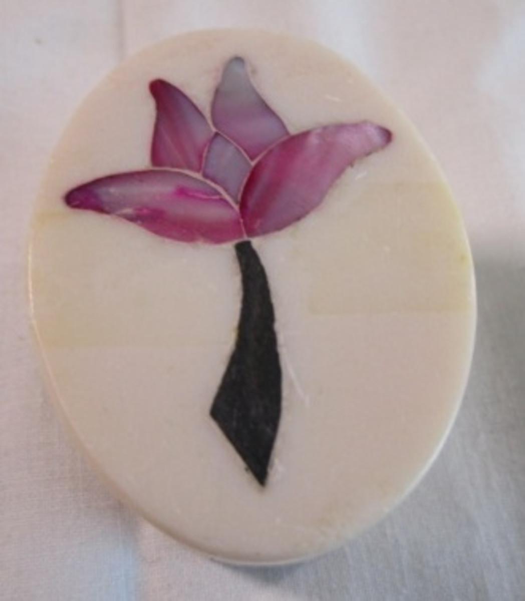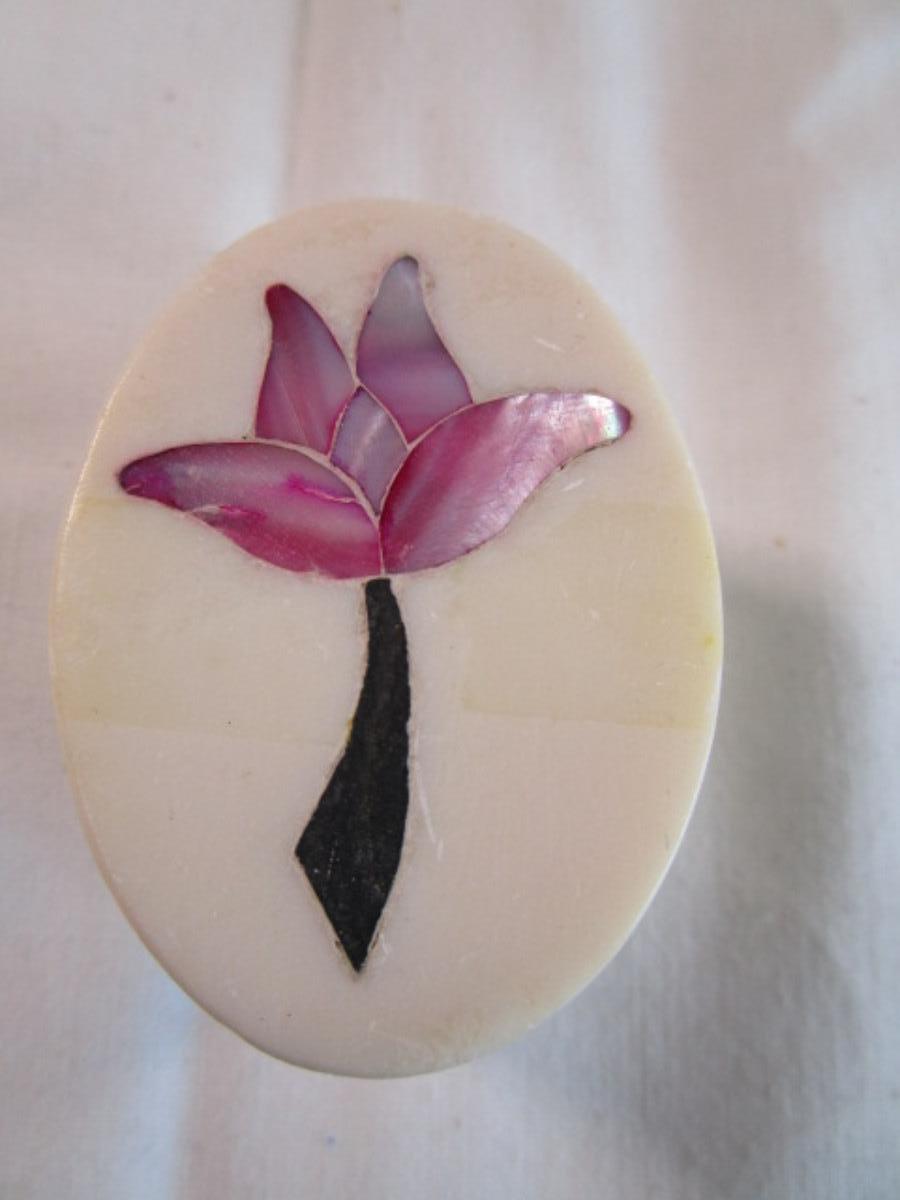Polished stone box with inlaid flower in the lid