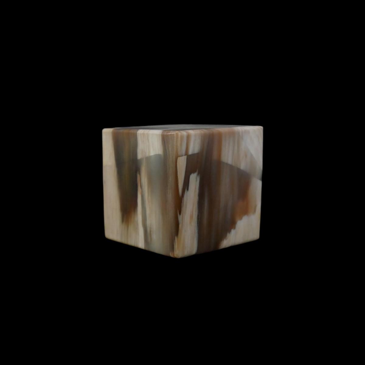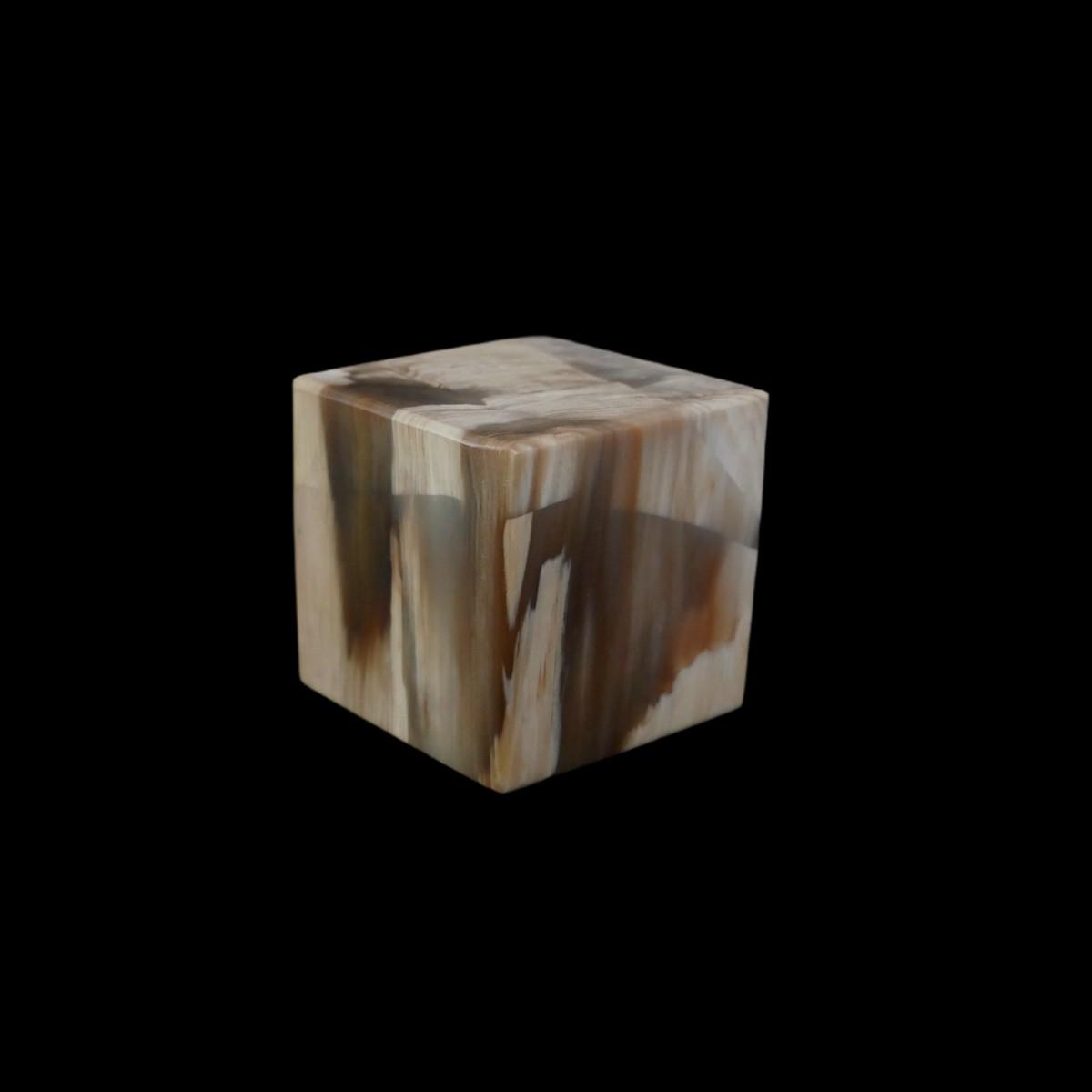 Fully polished stone cube. One corner has chip (see photo). Good condition. Measures L 2" x H 2" x W 2". Weighs 10.4oz/295. (R20)