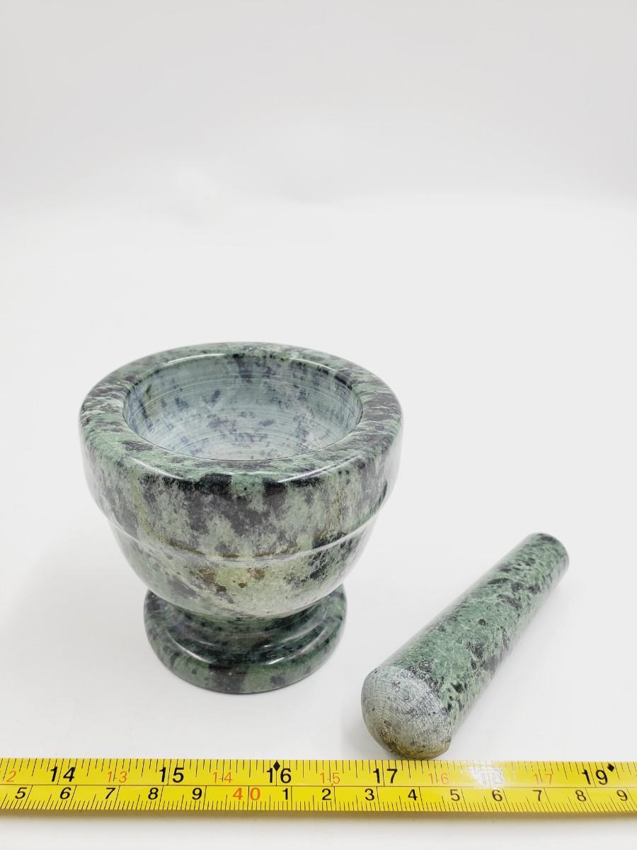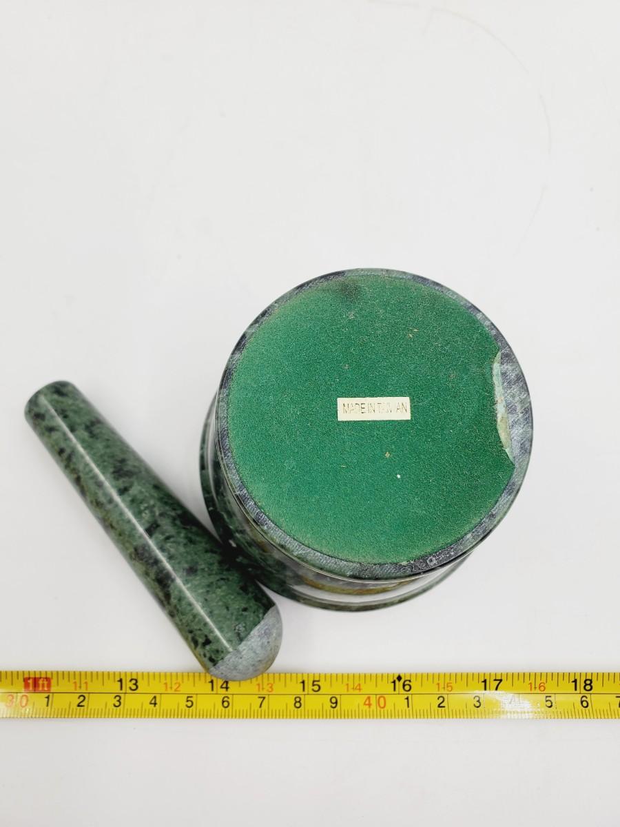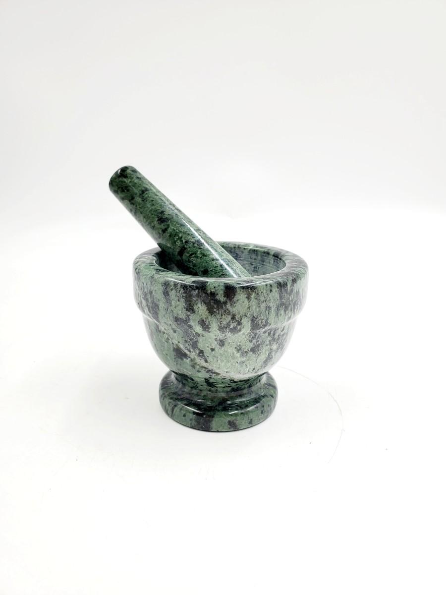 Beautiful green polished stone mortar and pestle