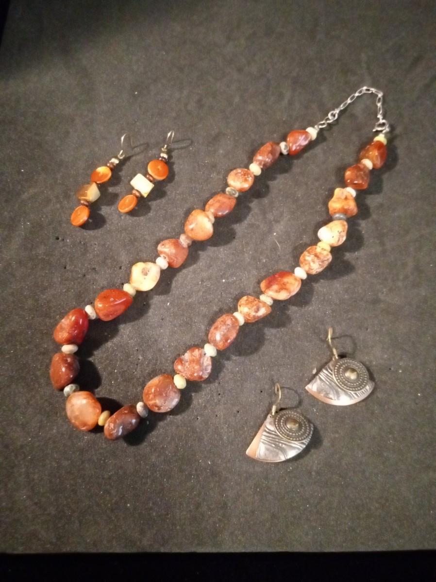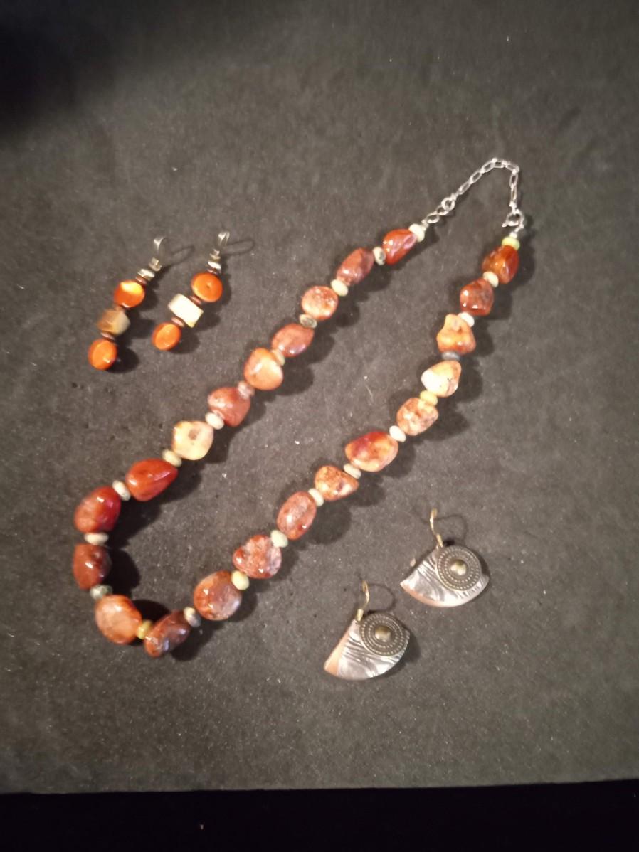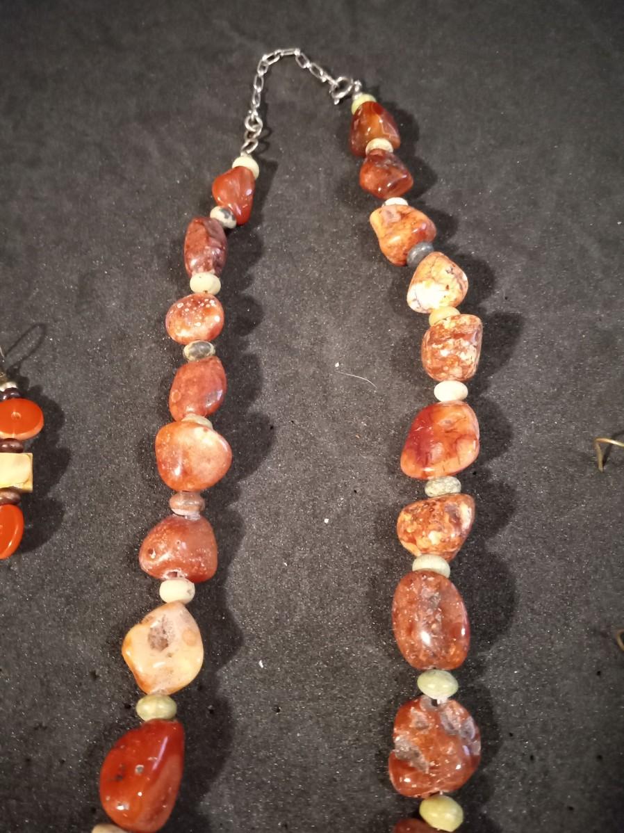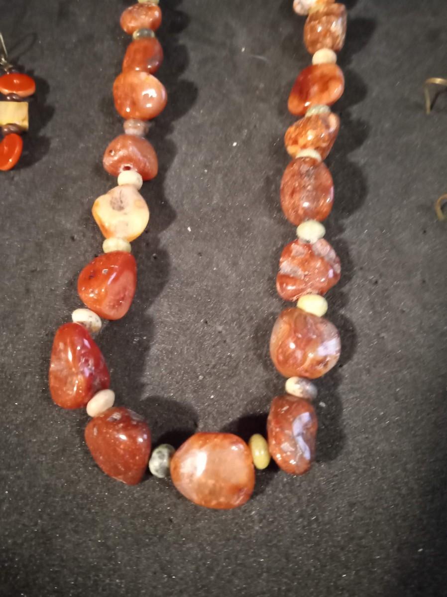 POLISHED STONE NECKLACE WITH 2 PAIRS OF PIERCED EARRINGS