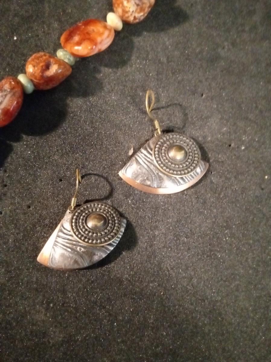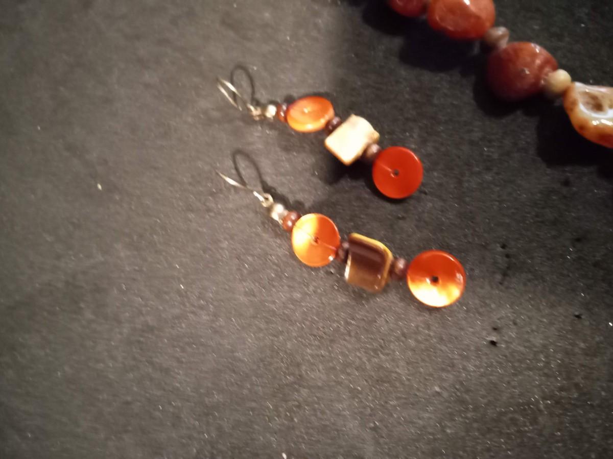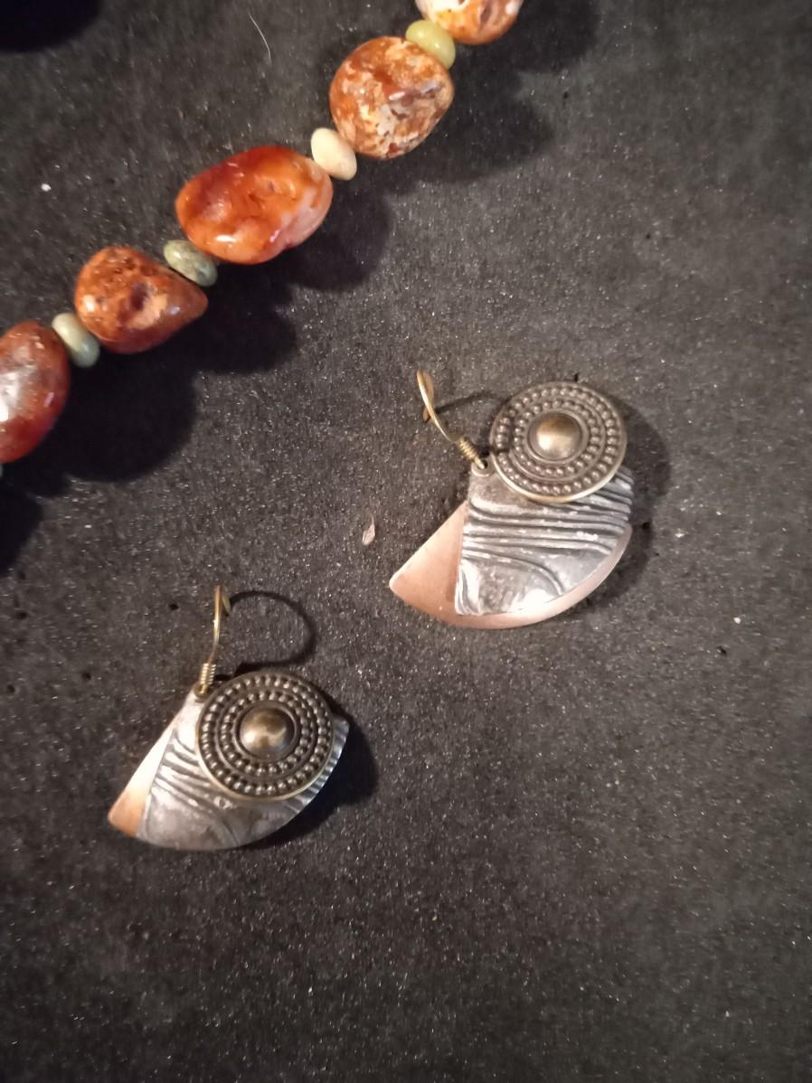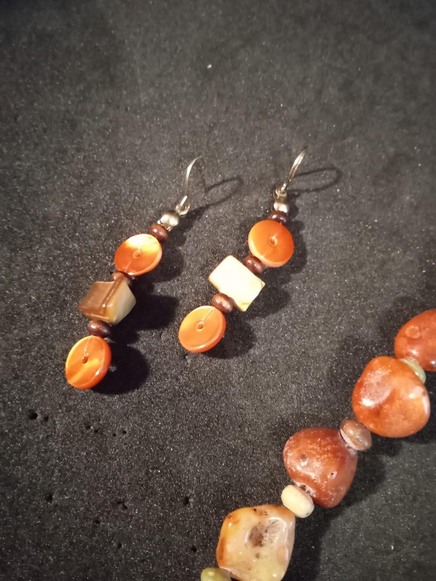 POLISHED STONE NECKLACE WITH 2 PAIRS OF PIERCED EARRINGS