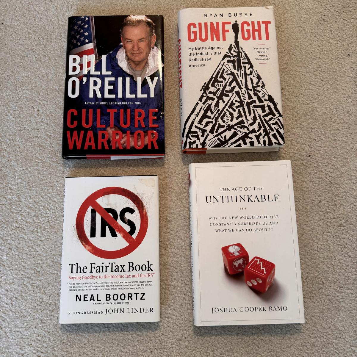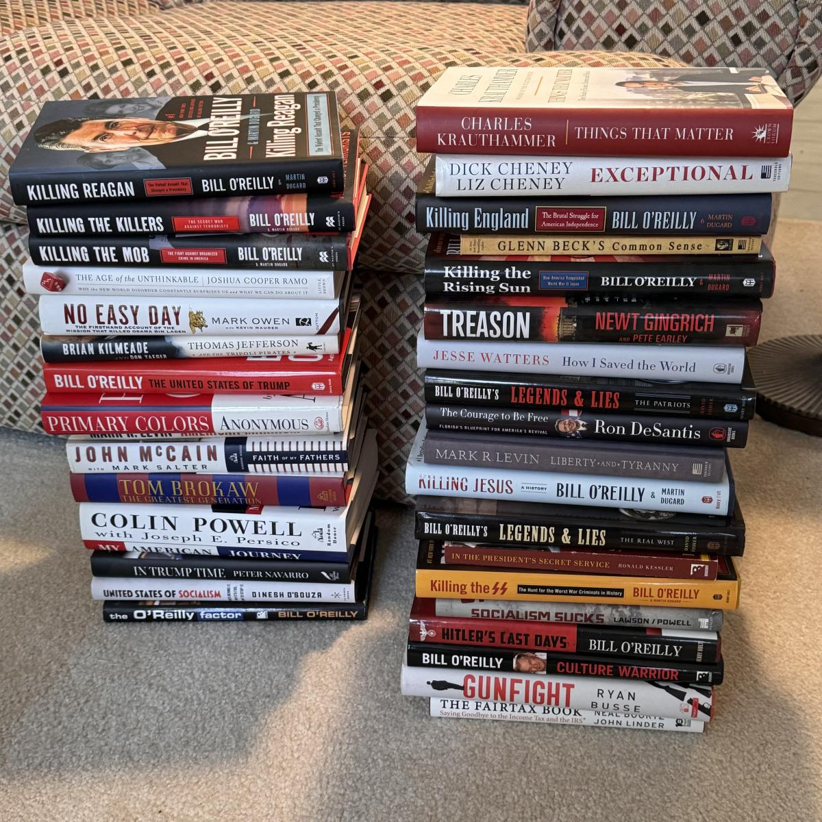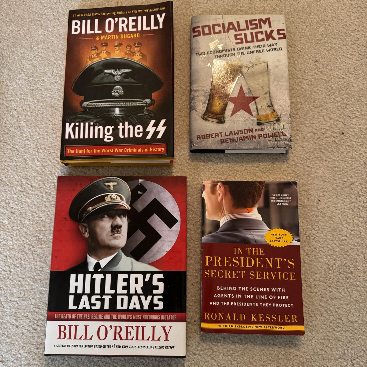 This lot includes 34 political books covering socialism, Marxism, and other topics. You’ll find books on fair taxes, Donald Trump, Hitler, Reagan, and more. Shipping available.