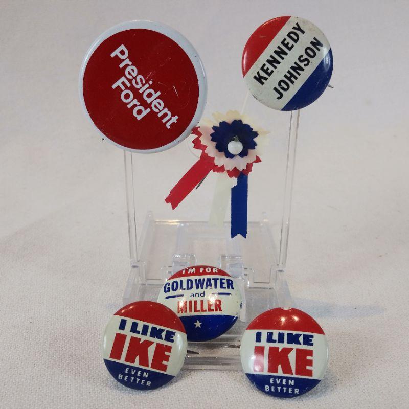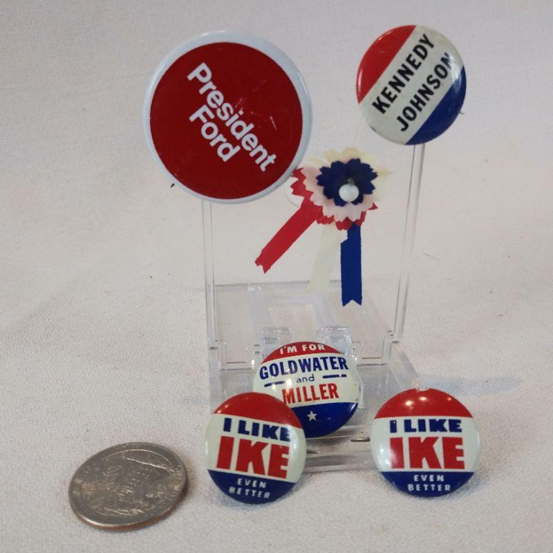 All buttons appear to be originals. The Goldwater Button one is missing the pin back. Nice beginner set. All are in very good condition.