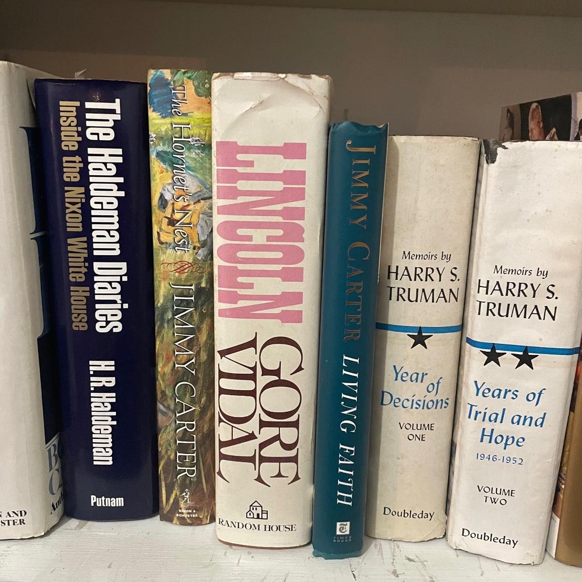 A great assortment of both fiction and non within the presidential and political genre that includes a First Edition titled Kennedy by Theodore Sorensen. Also includes books by authors Bill Clinton, Gore Vidal, Harry S. Truman and more.