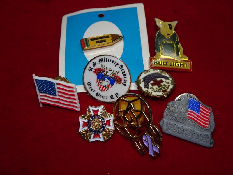 Political Tie Tacks and Pins, Bud Light, USA Flag, Fraternal