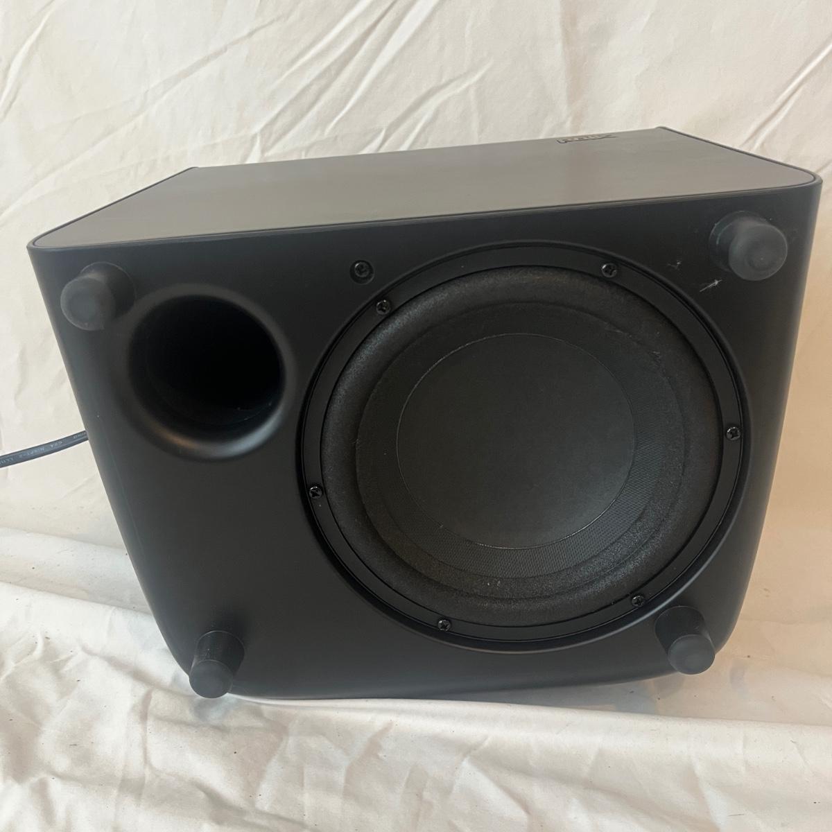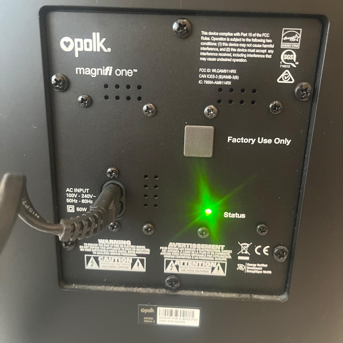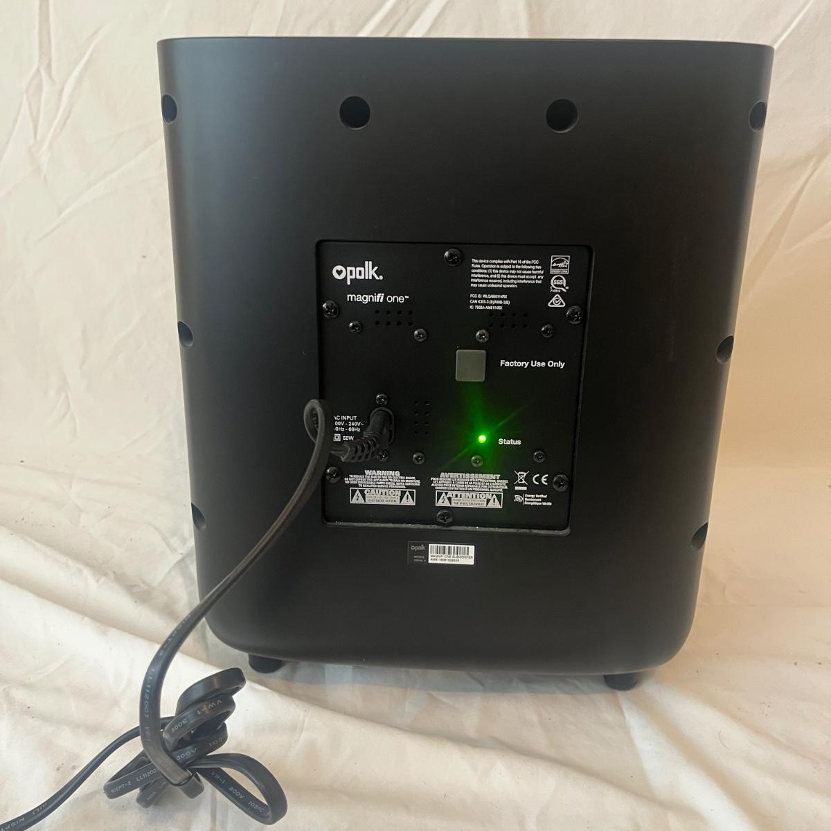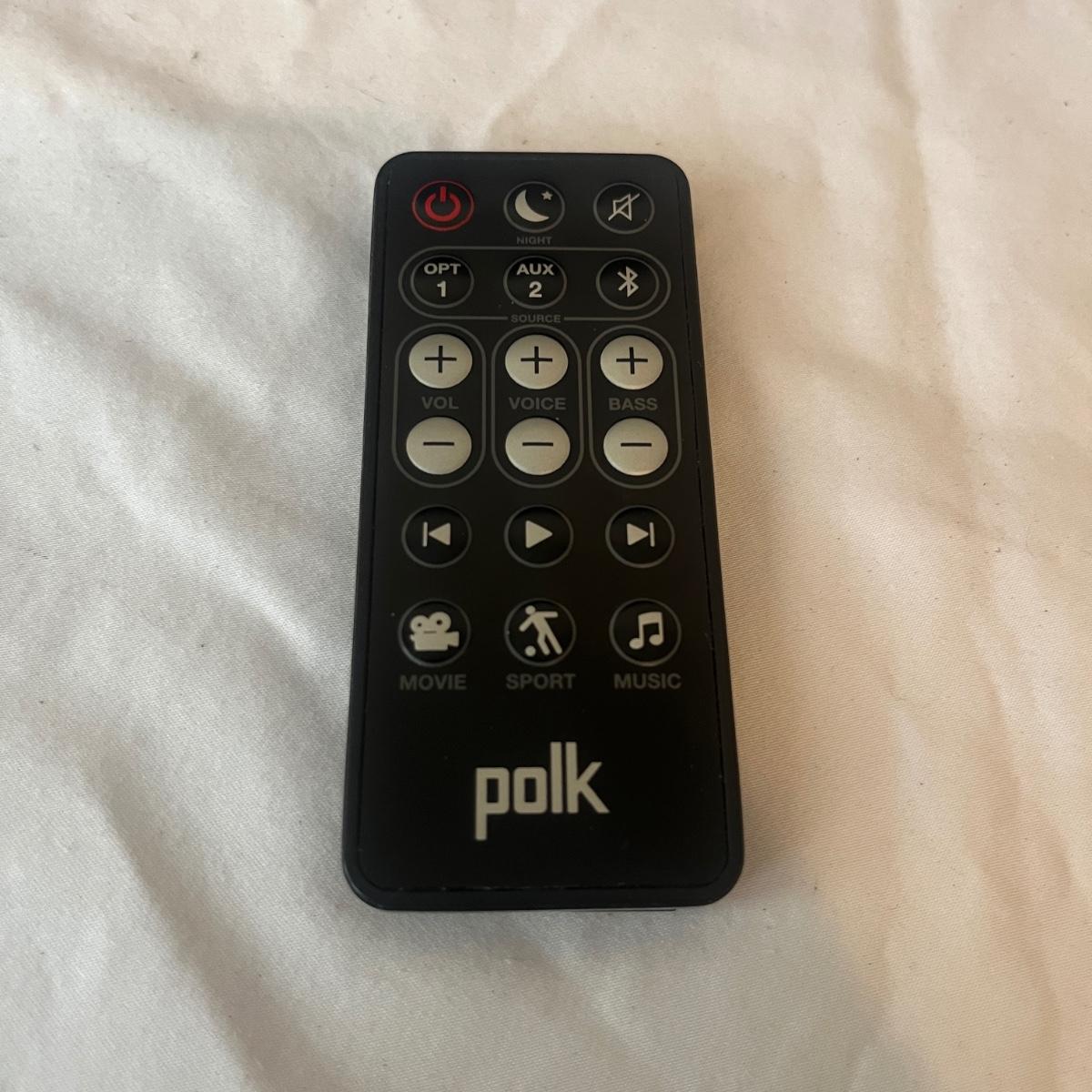 Lot includes a Polk sound bar and subwoofer and remote. All items powered on when plugged in. Sound bar measures 34” x 3” x 2”H.