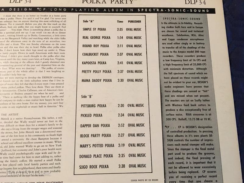 "Polkas for Parties" Wally Mateck and His Polka Faces, Record (33)