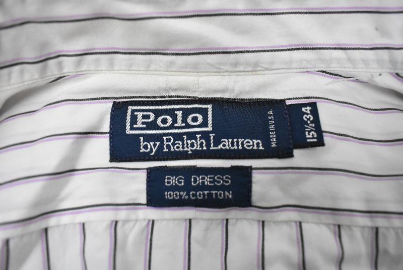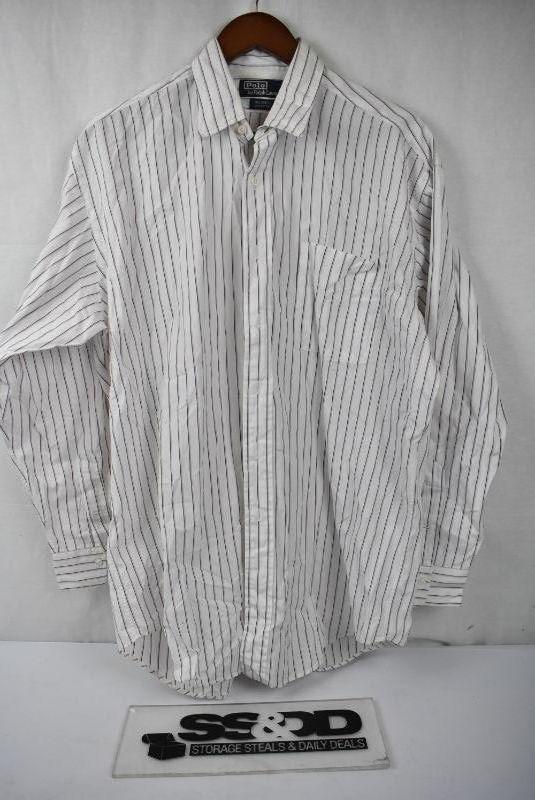 Polo by Ralph Lauren Long Sleeve Dress Shirt 15 1/2 34, White w/ stripes