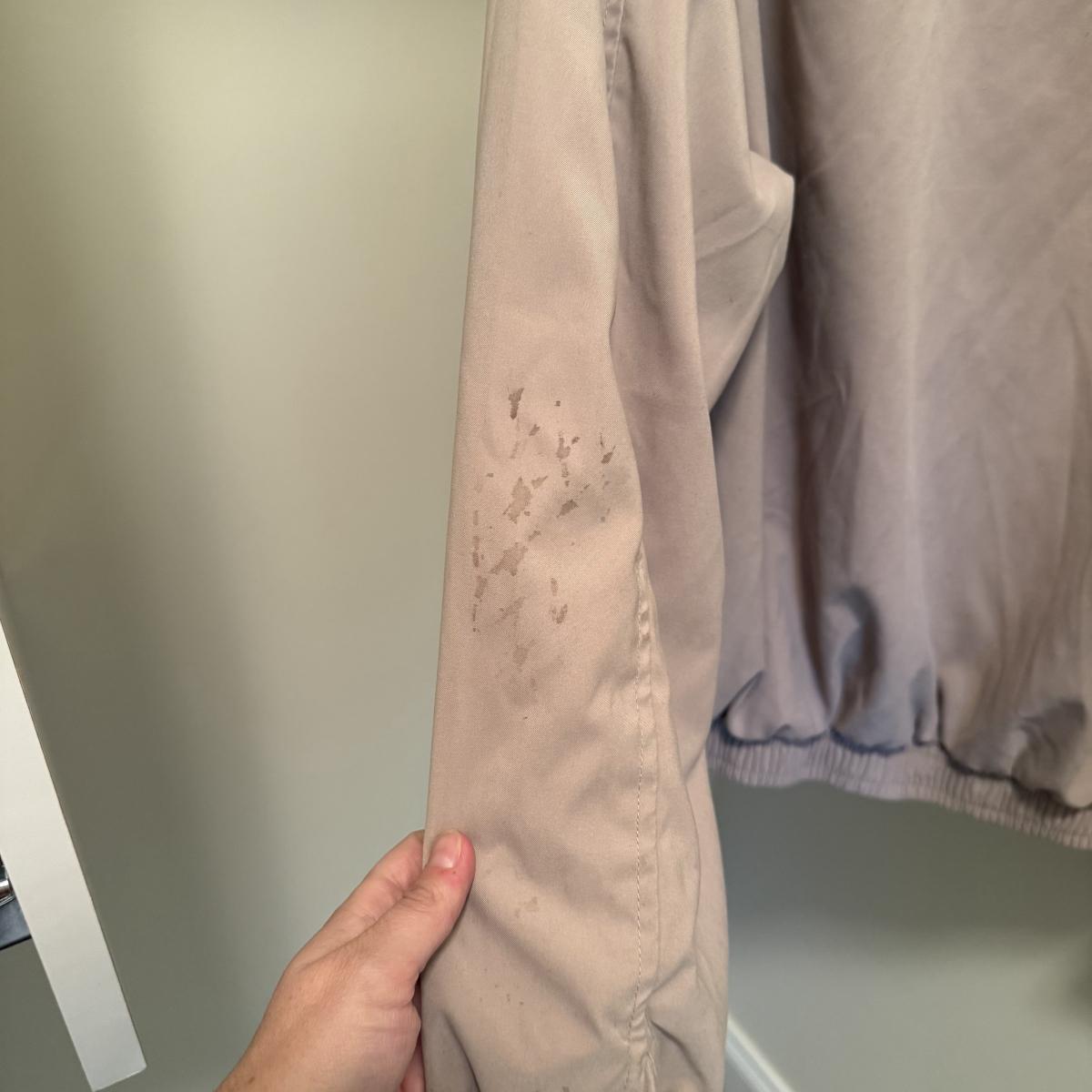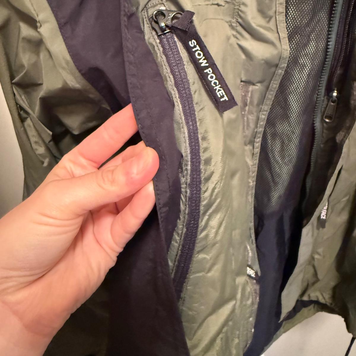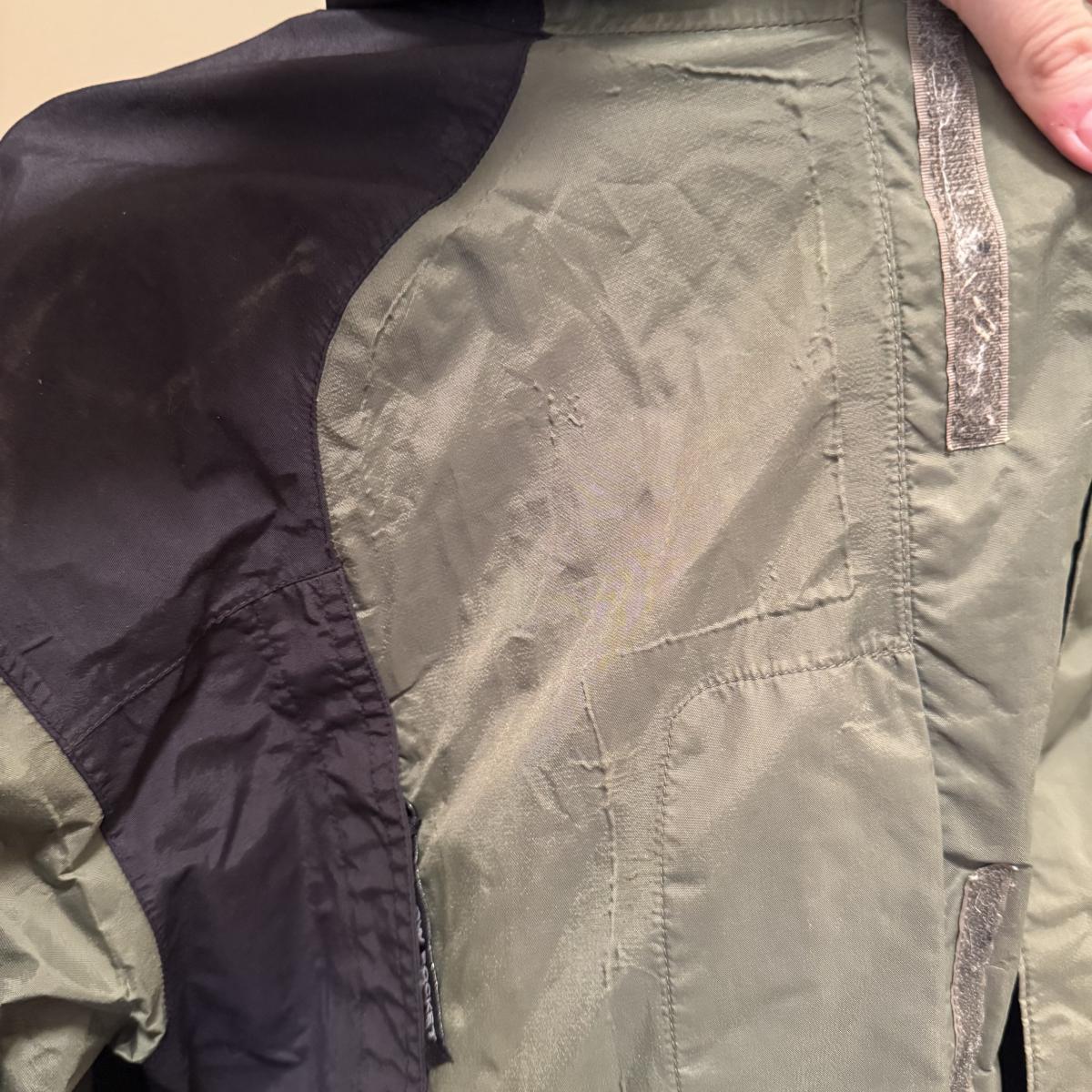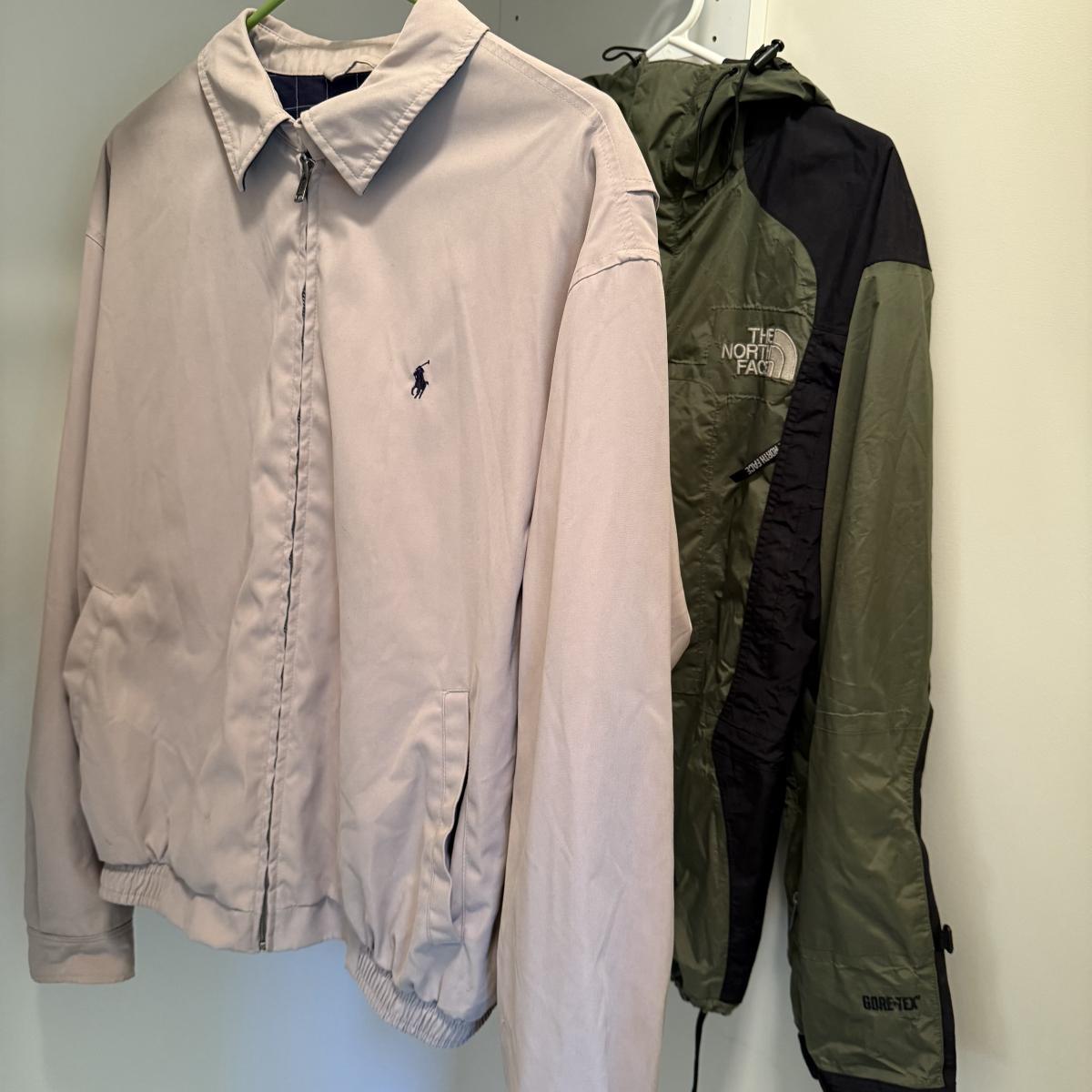 Two men’s jackets. One is Polo by Ralph Lauren, size L. It has a small stain on the left elbow. The other is Northface, size M. It has so many pockets! Some light condition issues, see photos. The elastic adjustment strings are worn.