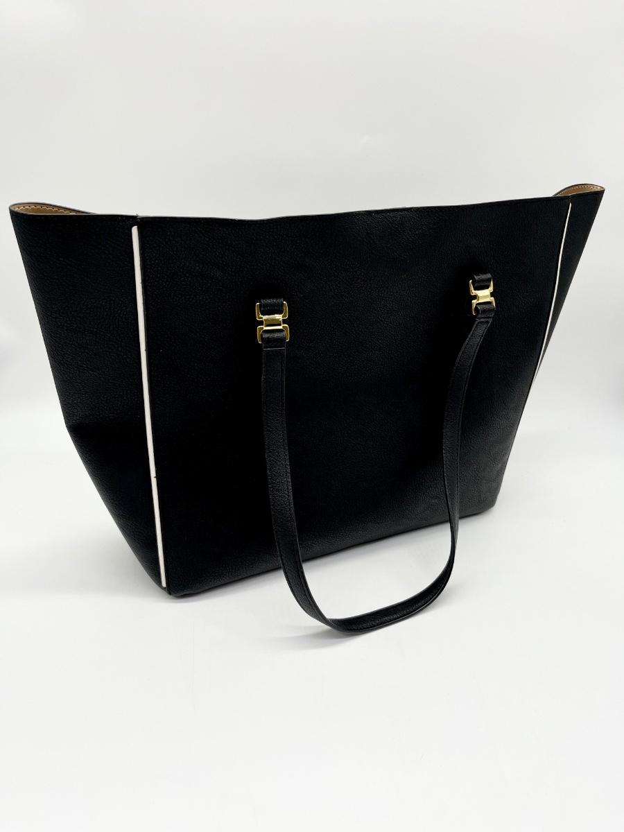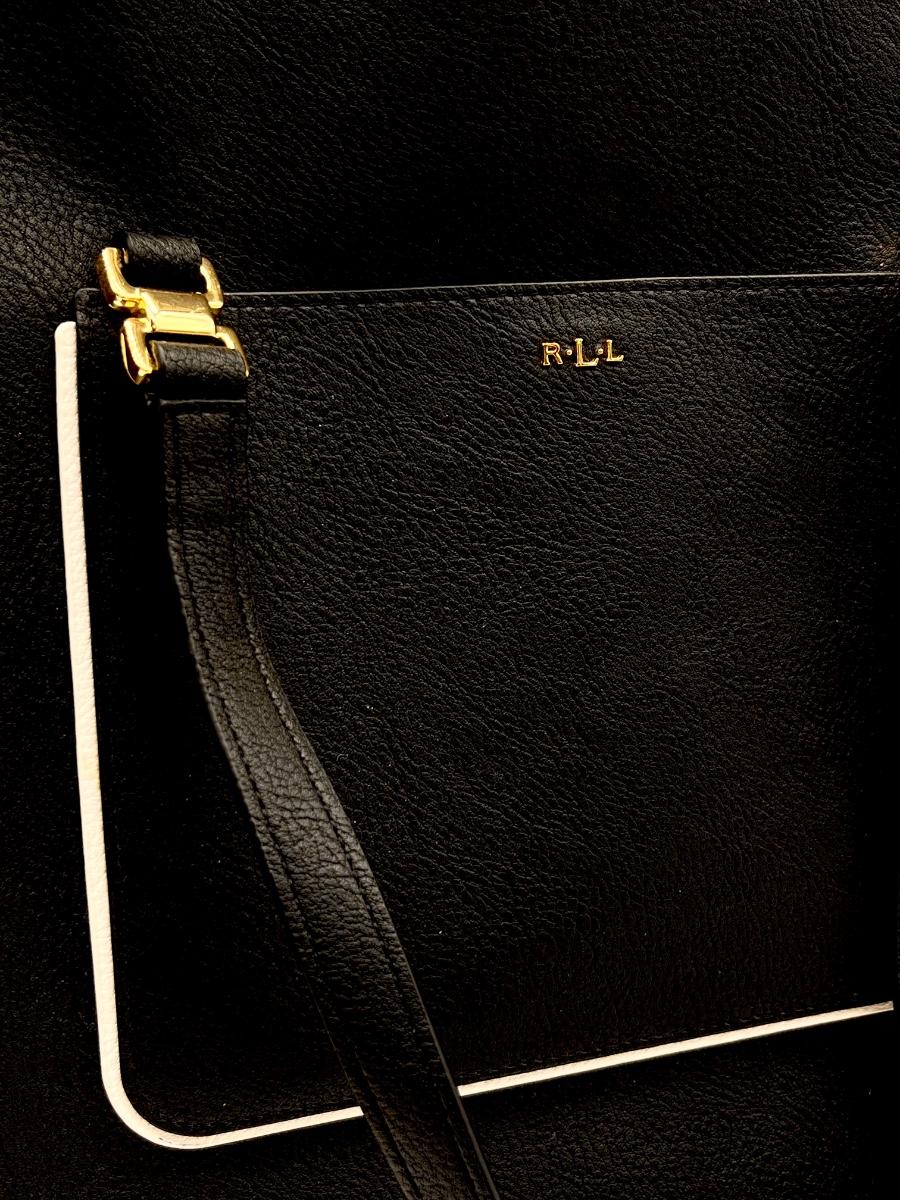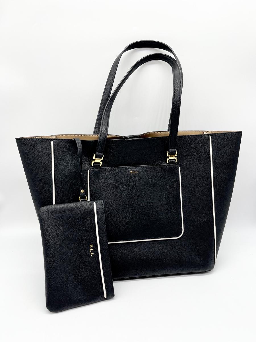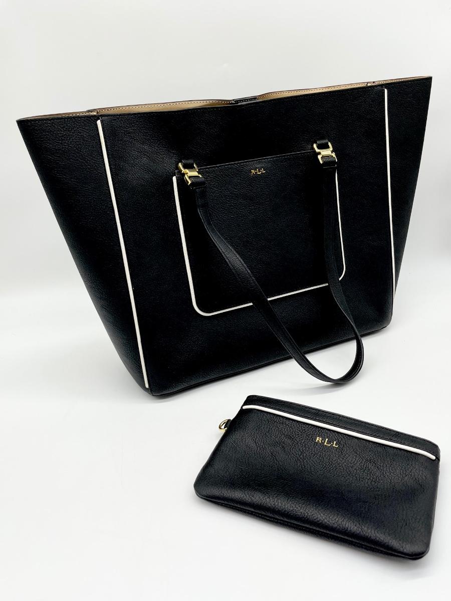 POLO RALPH LAUREN ~ Black Leather Tote ~ White Trim ~ With Wristlet