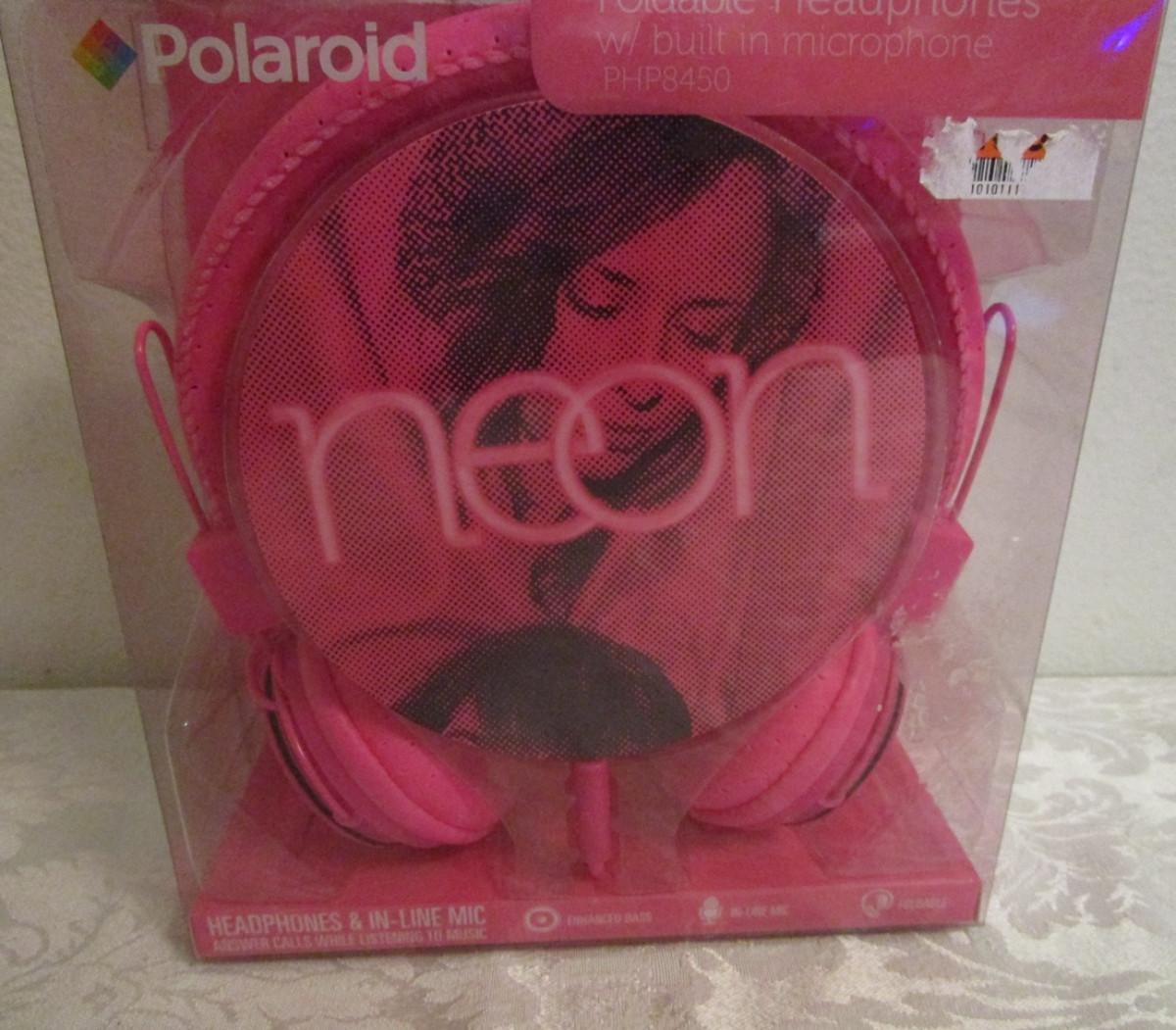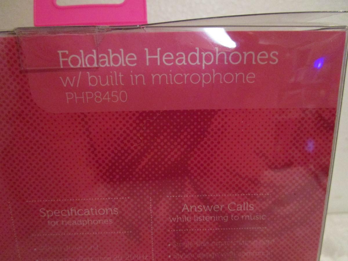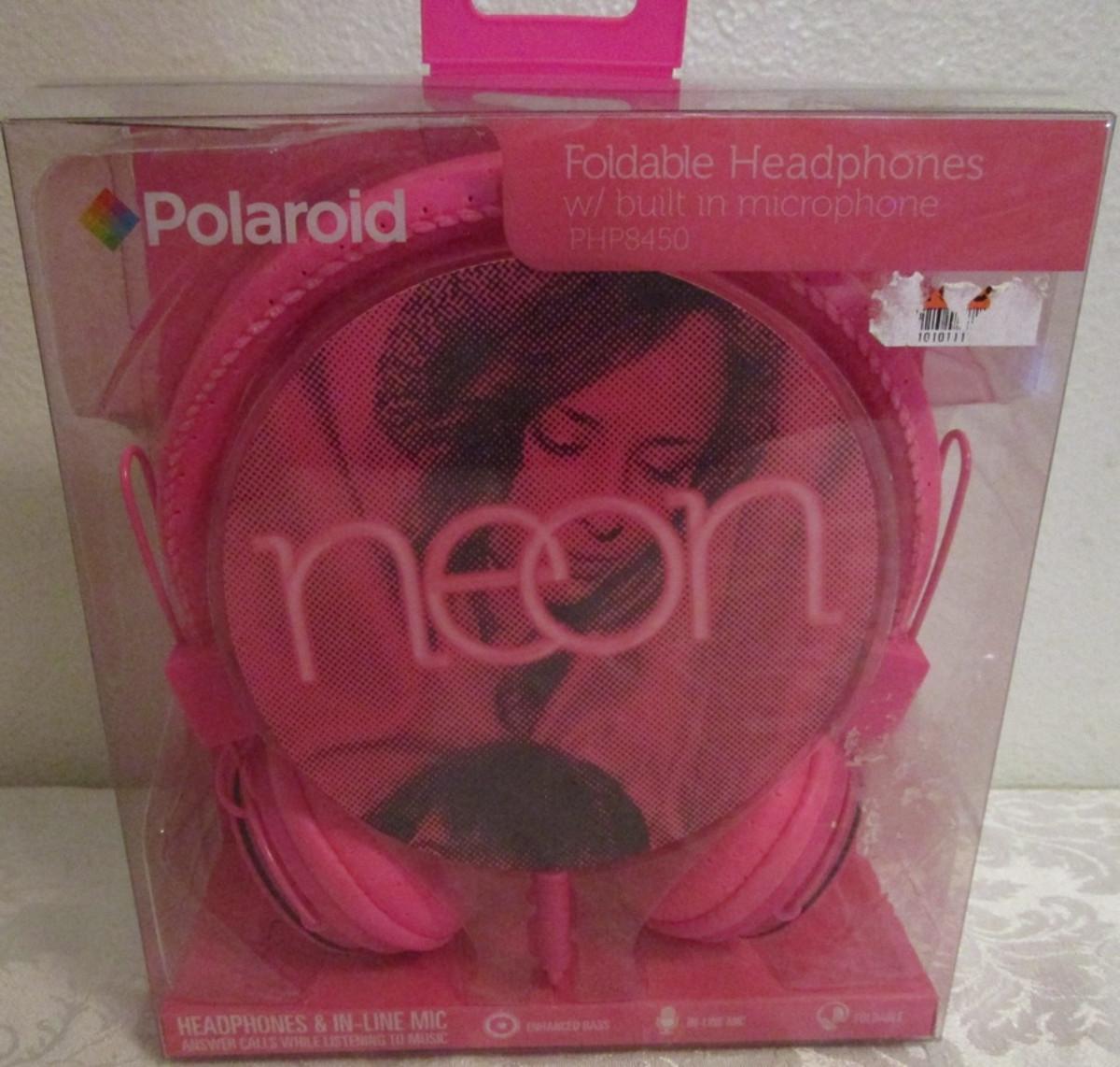 Poloroid neon pink foldable headphones with microphone