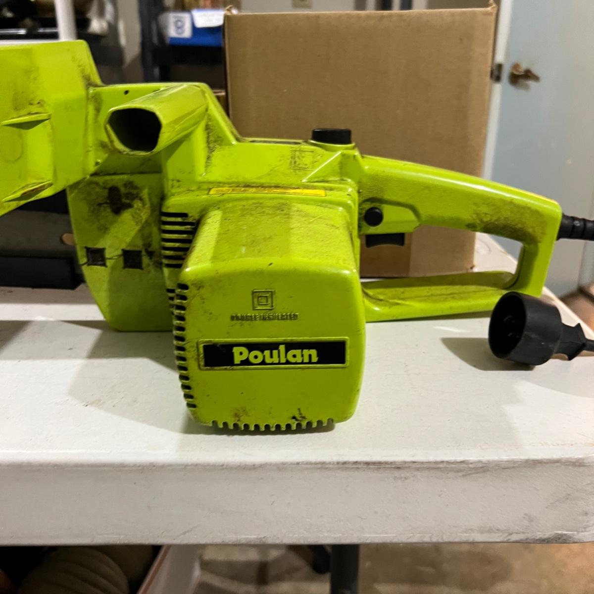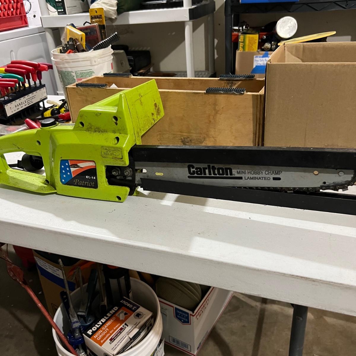 Poulenc Patriot EL-14, Carlton- Mini Hobby Champ electric chainsaw powers on when plugged in.
