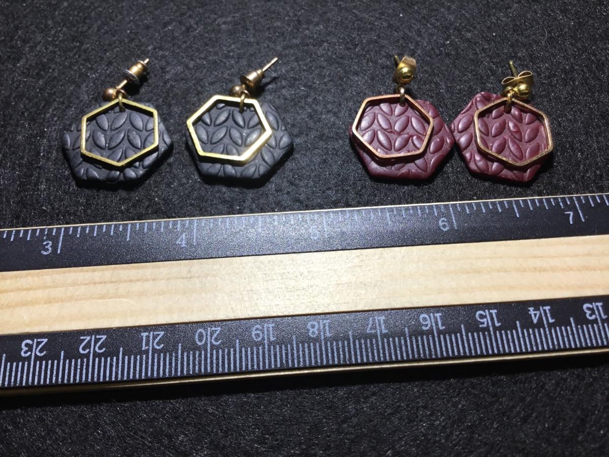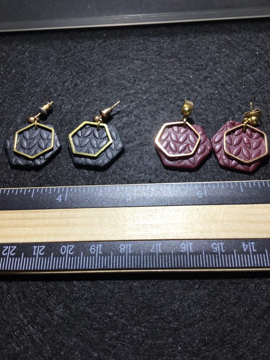 Polymer clay type hexagon jump ring earrings black and maroon