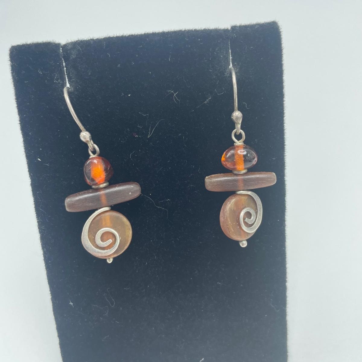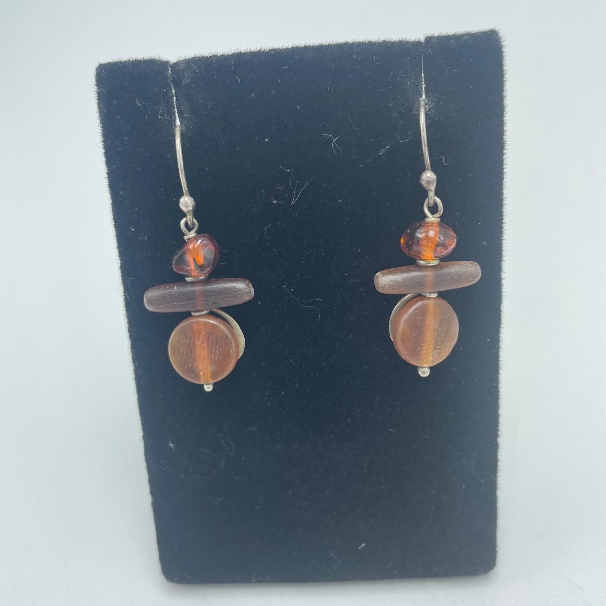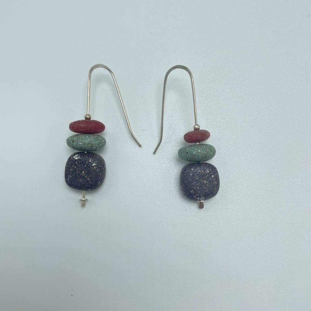 Tamera Wells, Southern Highland's Craft Guild jeweler earrings with stacked polymer pebble earrings. Lot also contains another pair of French hook earrings with what appears to be an amber pebble stacked on resin beads with silver accents. See images. Shipping available.