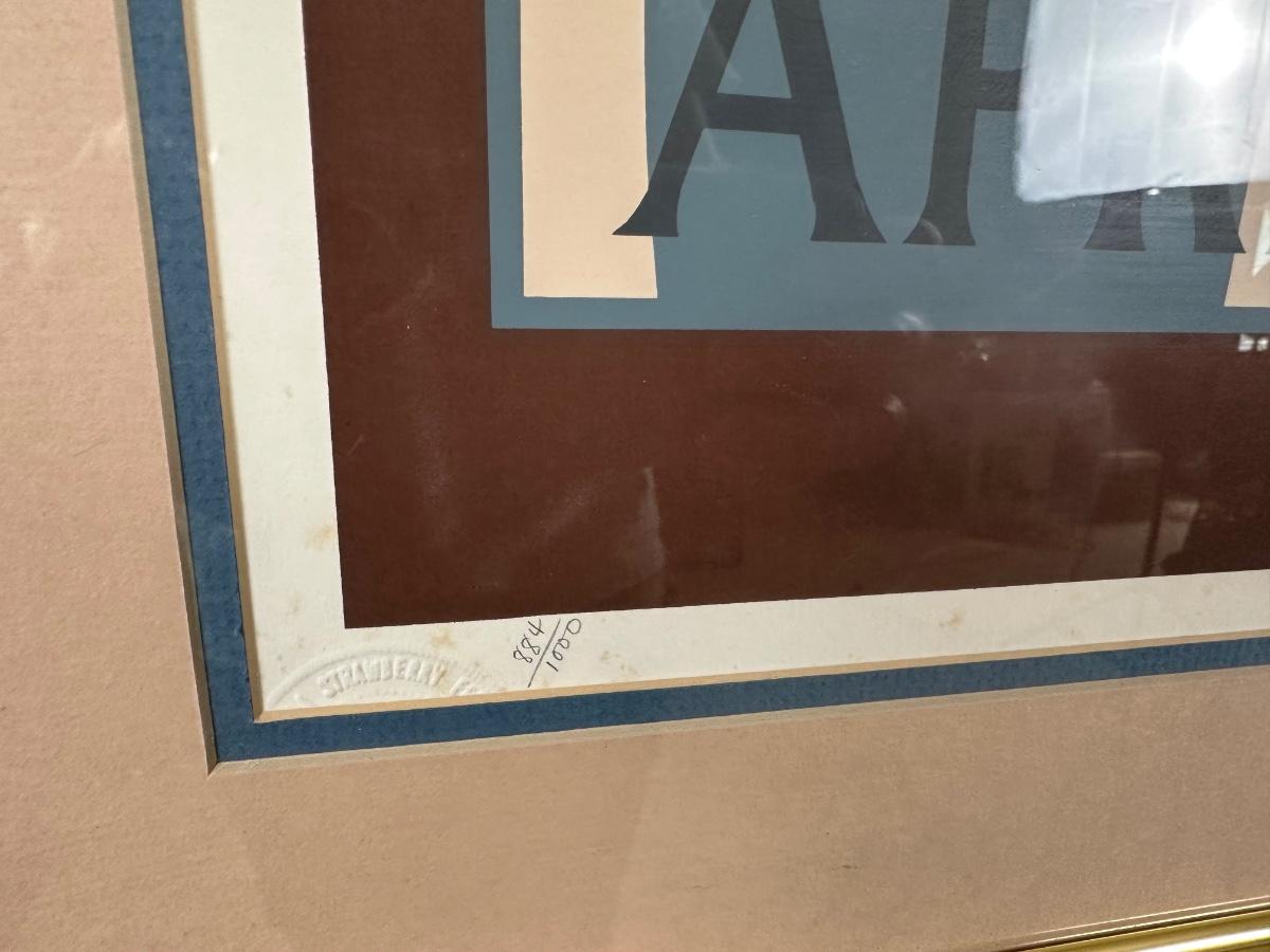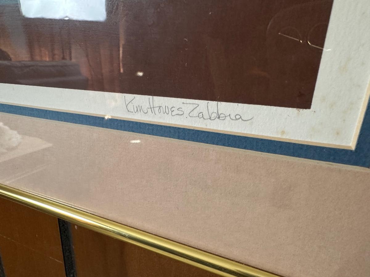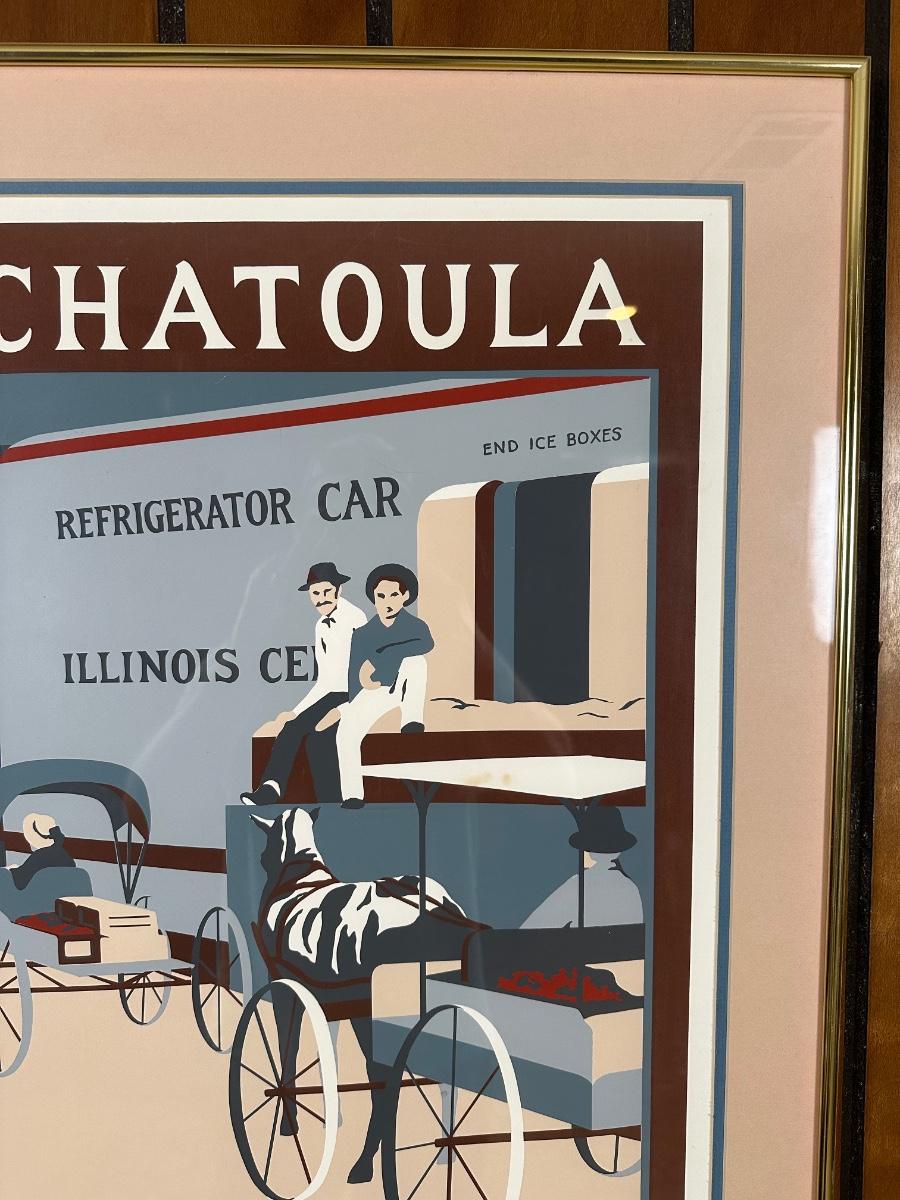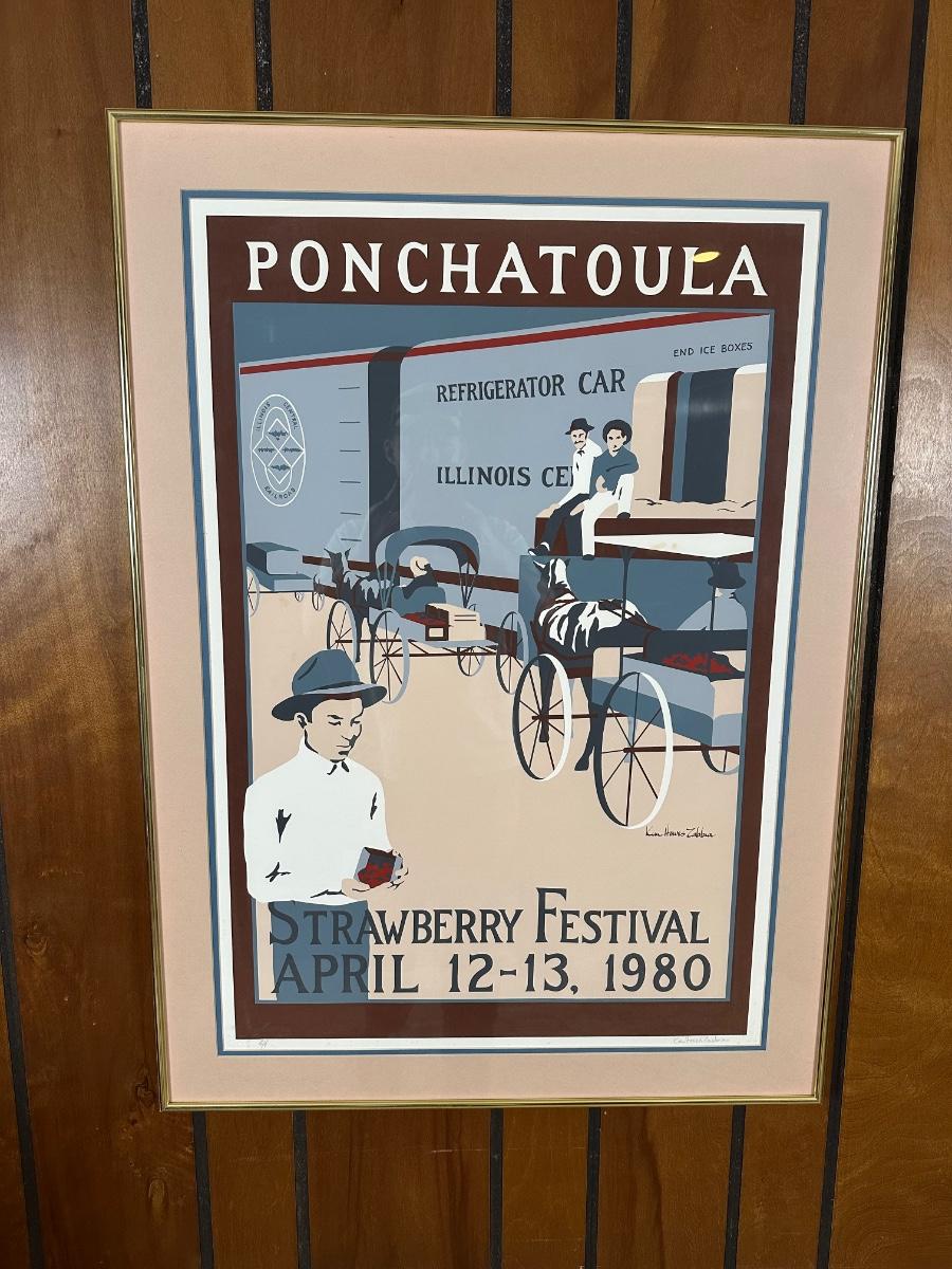 Framed limited-edition art print commemorating the Ponchatoula Strawberry Festival, April 12–13, 1980. Features vintage railroad strawberry transport scene. Signed by artist Kim Hovey Zabbia and hand-numbered