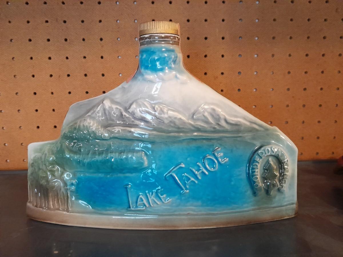 PONDEROSA RANCH HOUSE JIM BEAM DECANTER 7" X 10.5" AND AVERY CREATIONS HORSE STATUE 9" X 7"