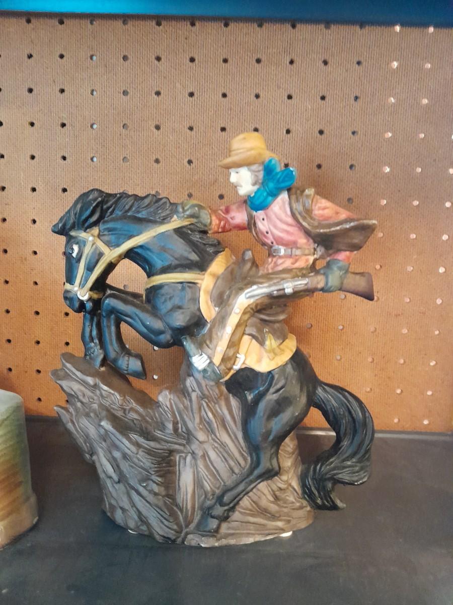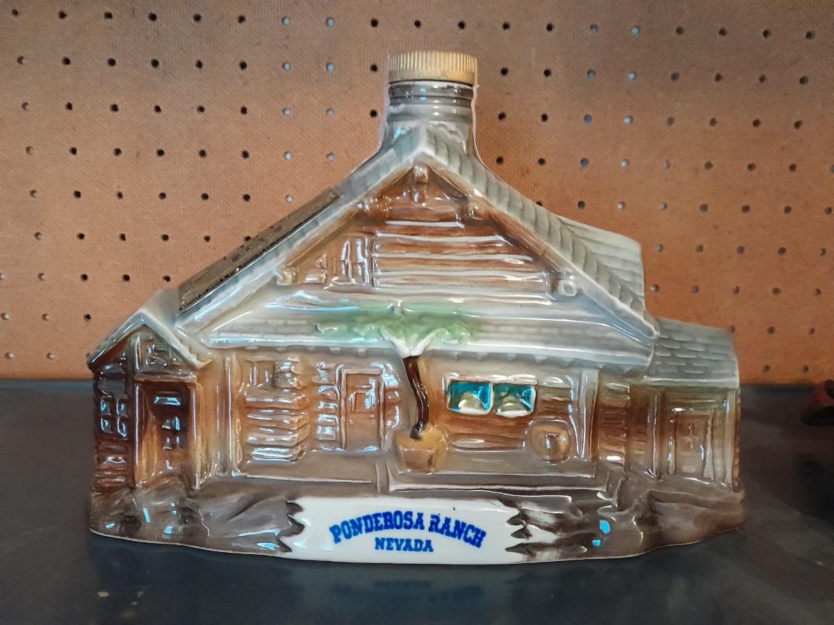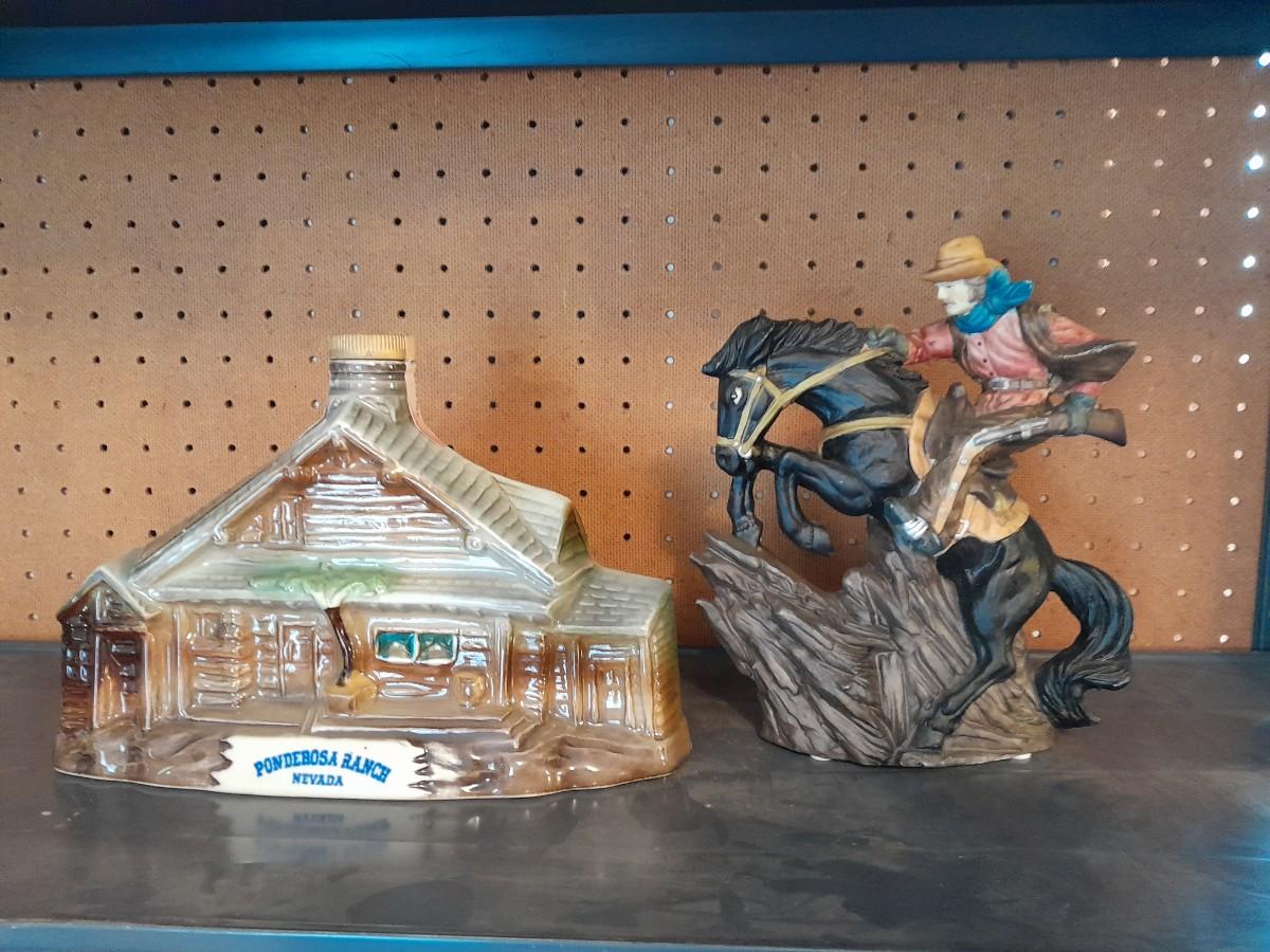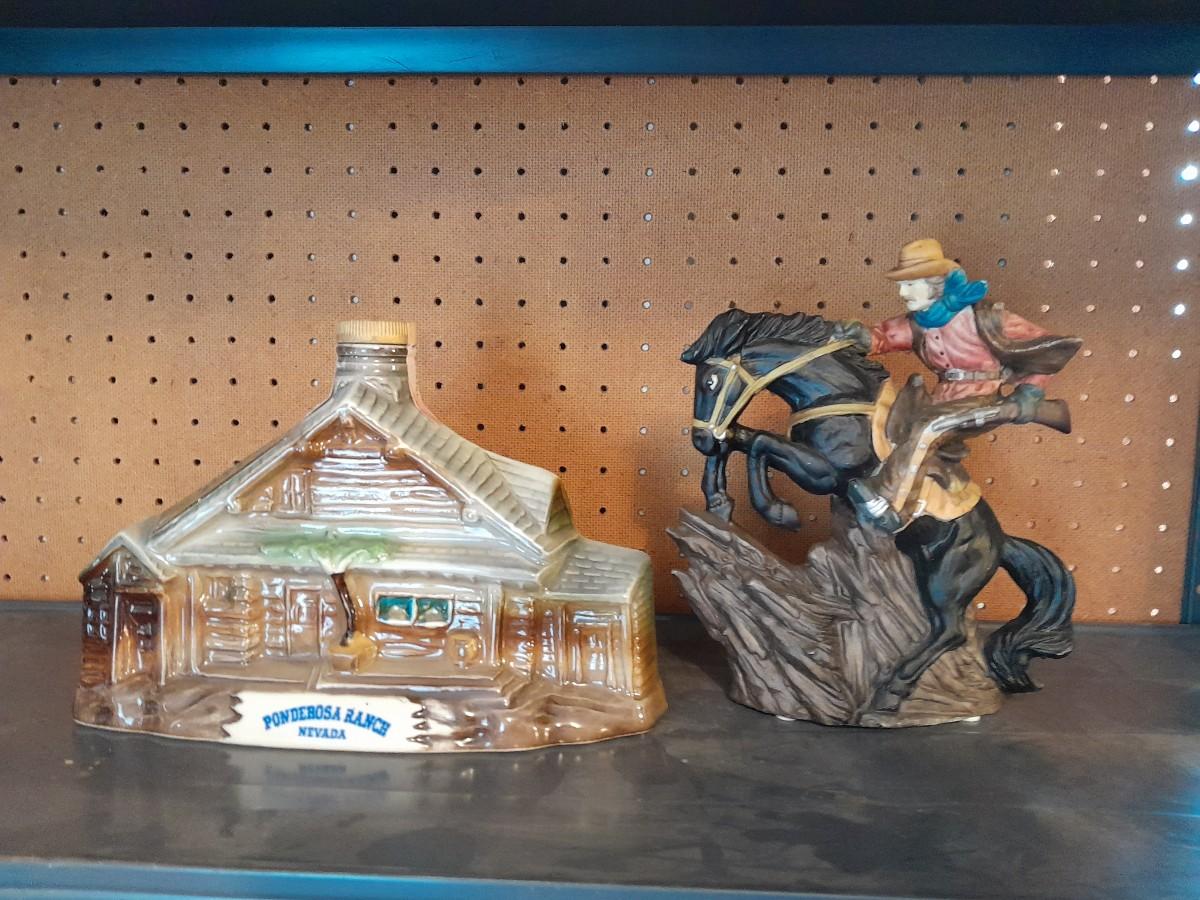 PONDEROSA RANCH HOUSE JIM BEAM DECANTER AND AVERY CREATIONS HORSE STATUE