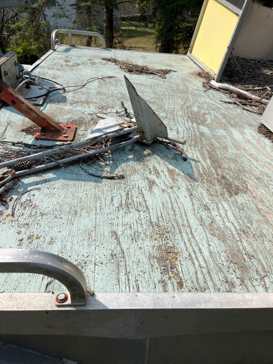 Tree fell on pontoon. Owner states a few years ago the Styrofoam and flooring was replaced.