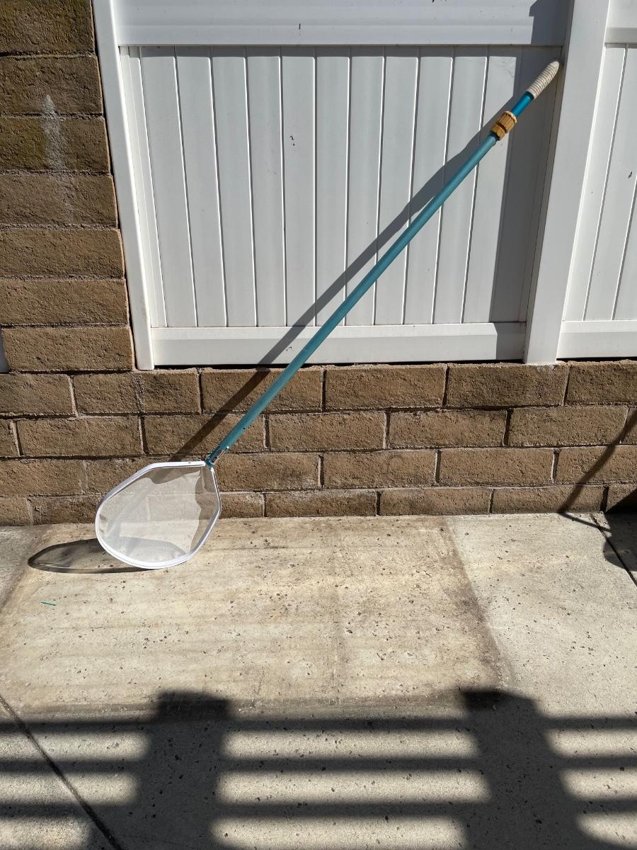 Nylon mesh leaf skimmer with extendable aluminum pole. Can be used with both pools and spas.