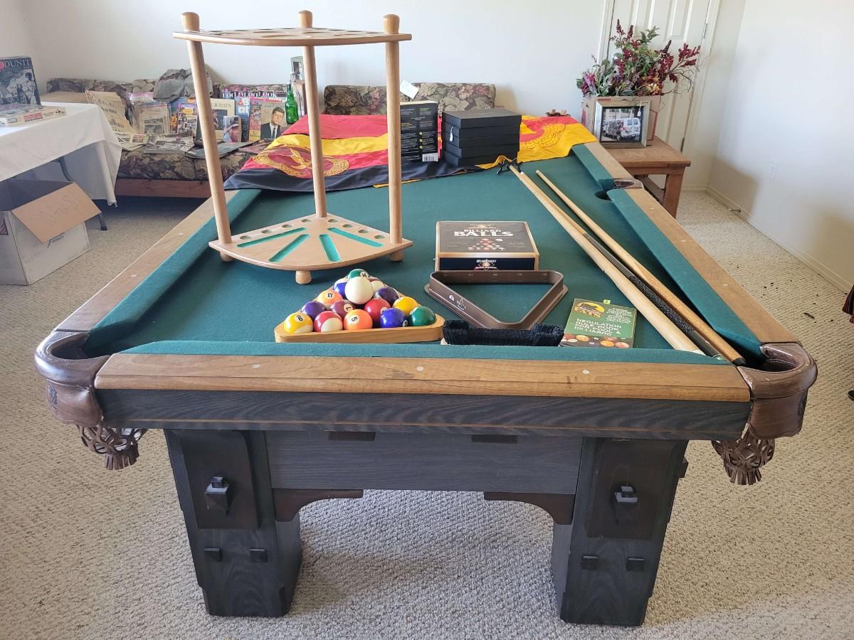 **VERY IMPORTANT** The table is located upstairs. The slate table will need to be properly disassembled with the 3 slate pieces separated, legs removed etc. in order to safely move the table downstairs to prevent any damage to the house.