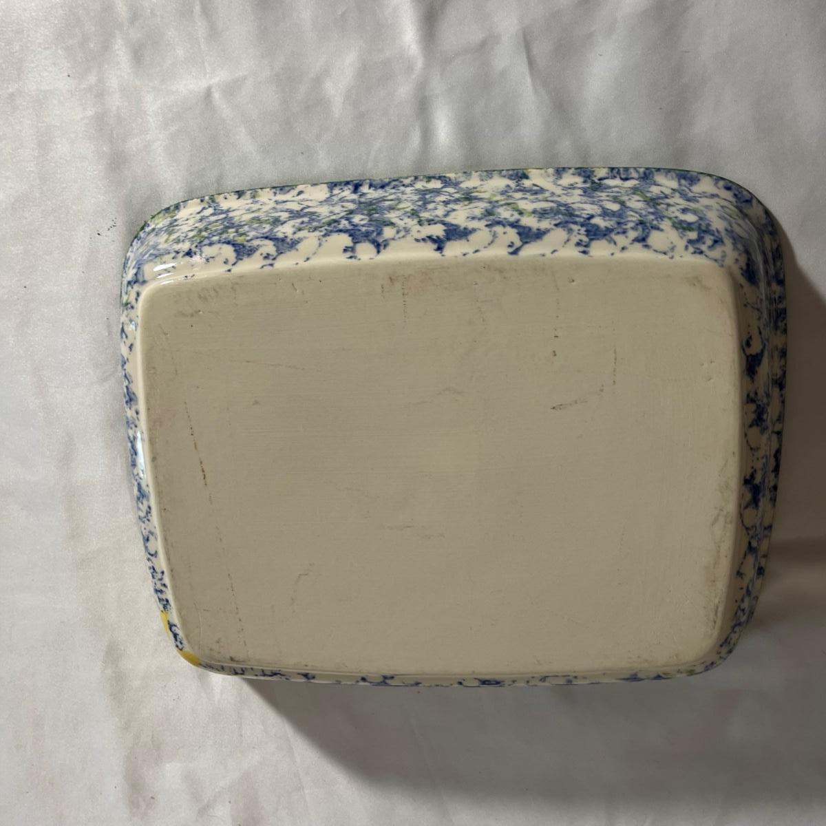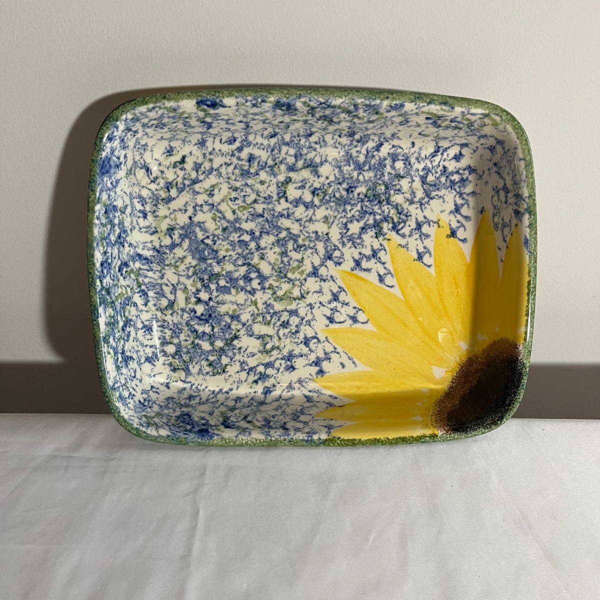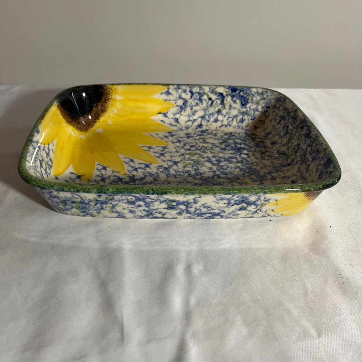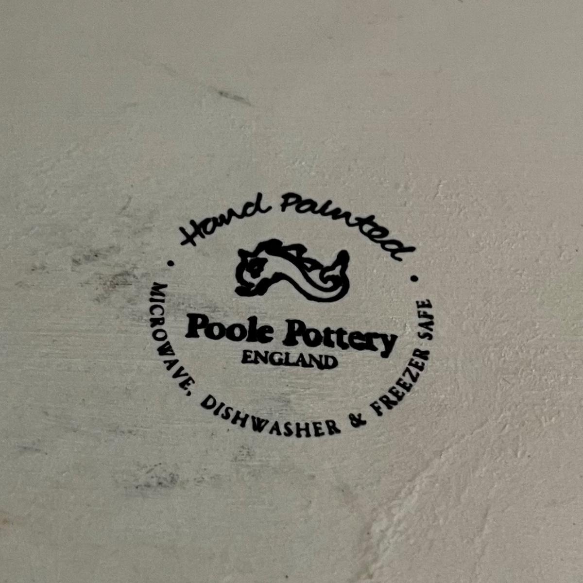 Lot includes a hand painted Poole Pottery serving dish that measures 8.75” x 11.75” x 2”. Also includes a rectangular lasagna serving dish that is unmarked but similar to the Poole pottery dish.
