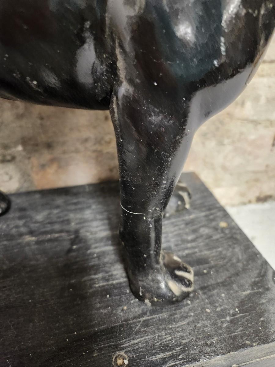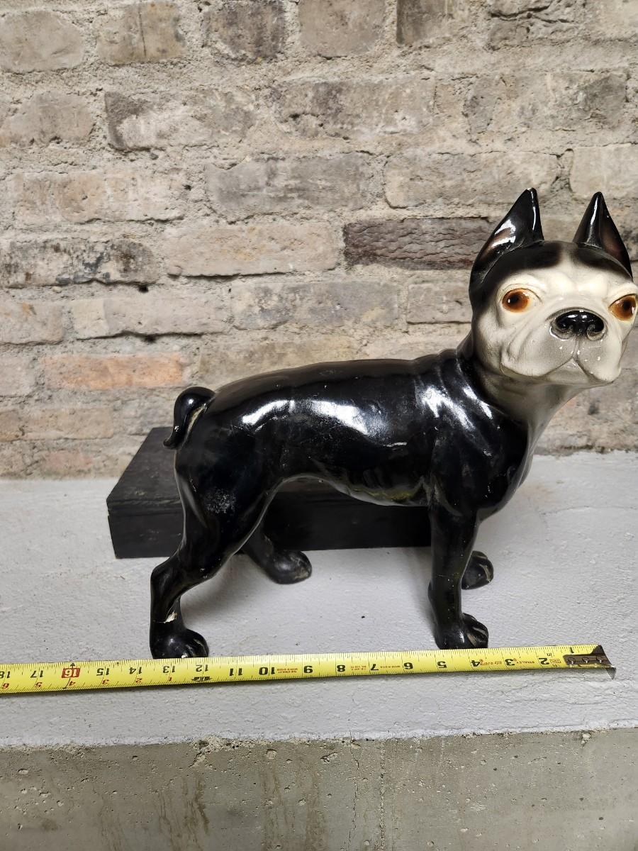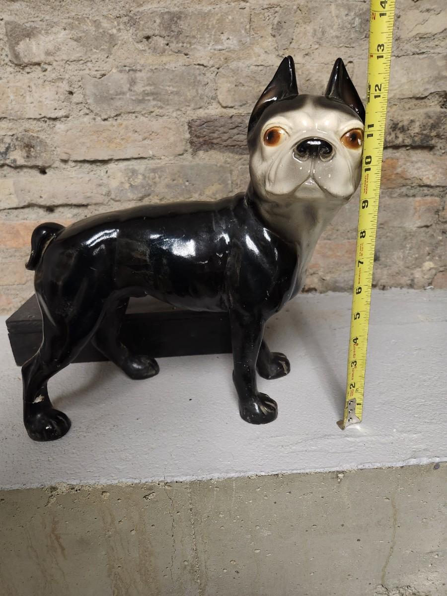 This sweet pup is plaster over cast, he is really heavy and maybe larger than he looks in the photos.. He is in the shop if you want to look at him. This pup took a fall and has a couple broken legs. While they still hold weight you can see the damage in the pictures...please look through the pictures before you bid