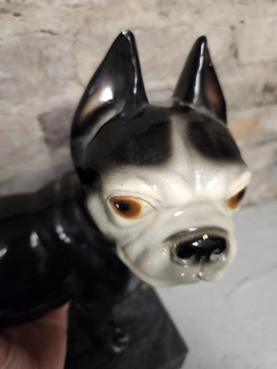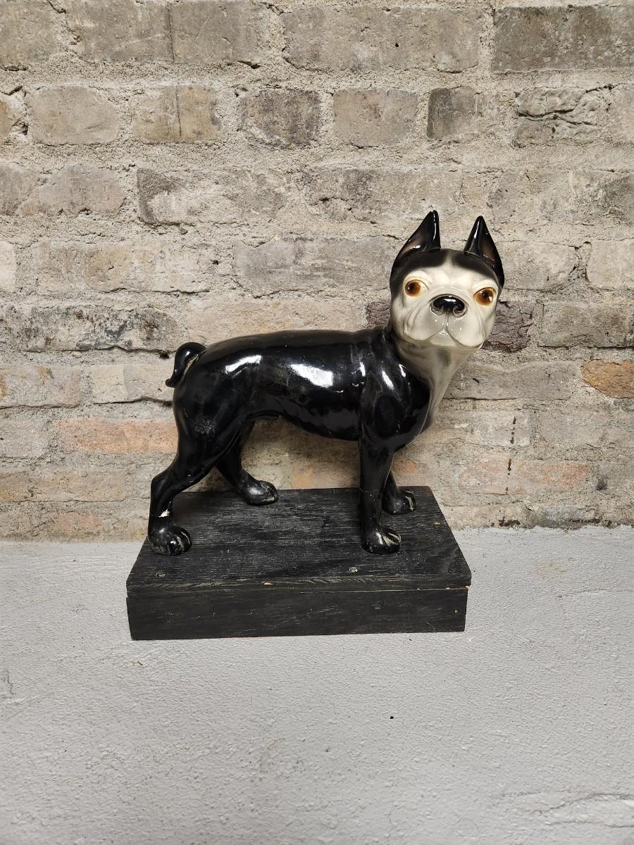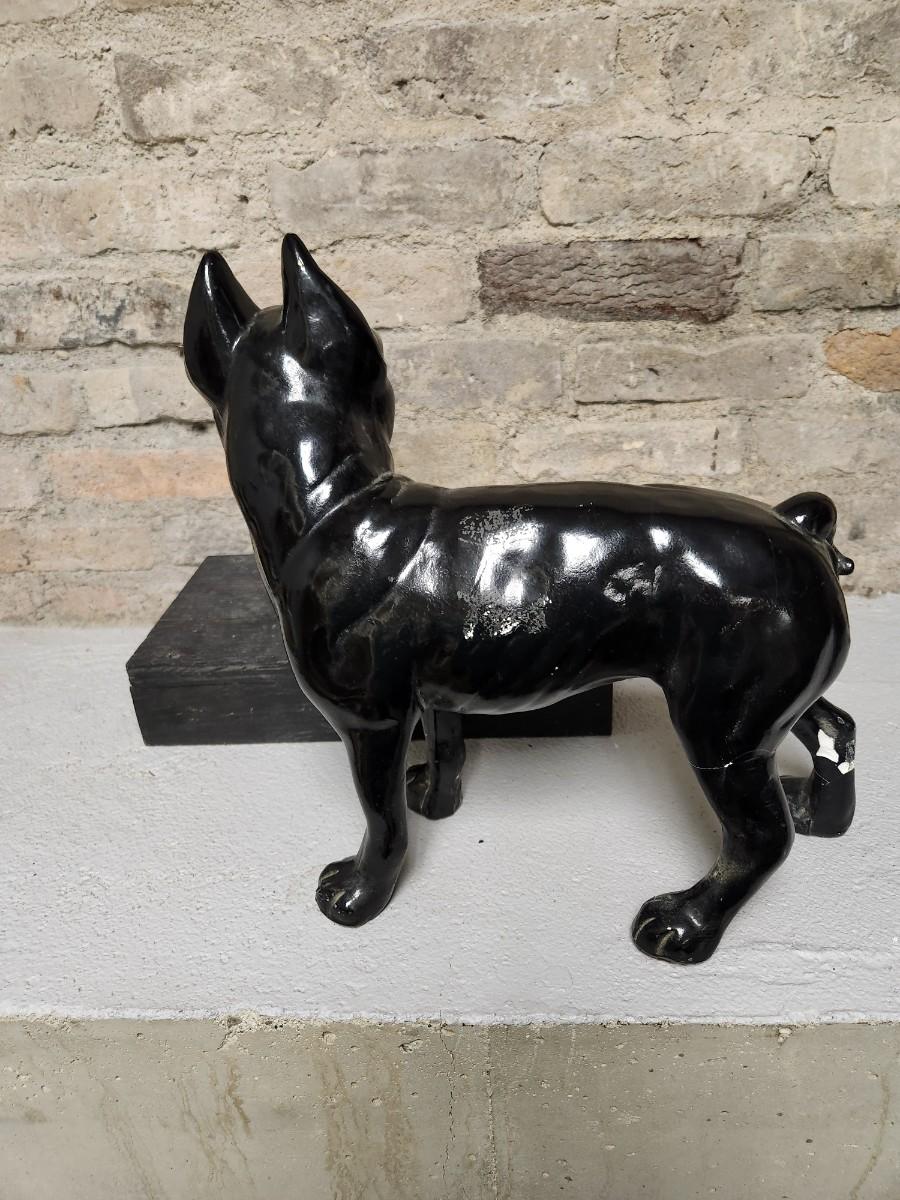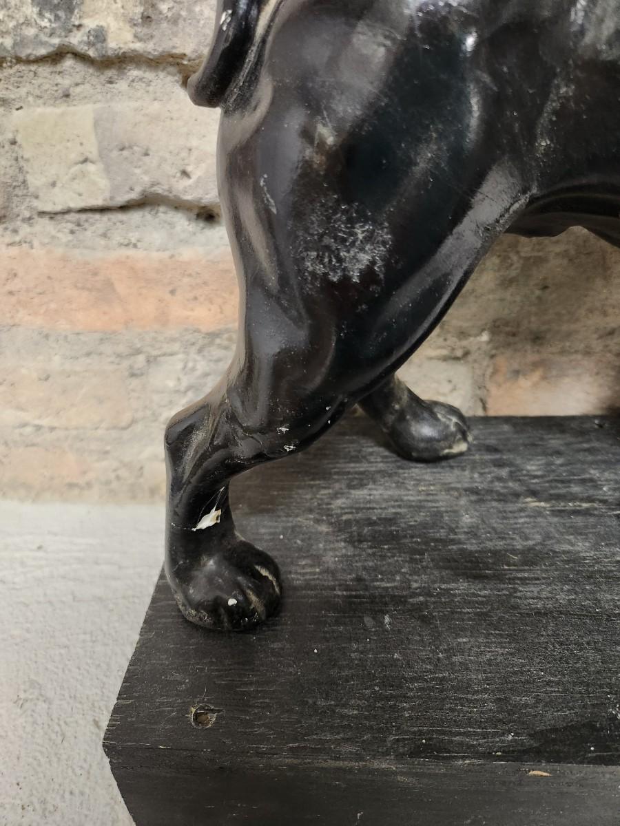This sweet pup is plaster over cast, he is really heavy and maybe larger than he looks in the photos.. He is in the shop if you want to look at him. This pup took a fall and has a couple broken legs. While they still hold weight you can see the damage in the pictures...please look through the pictures before you bid