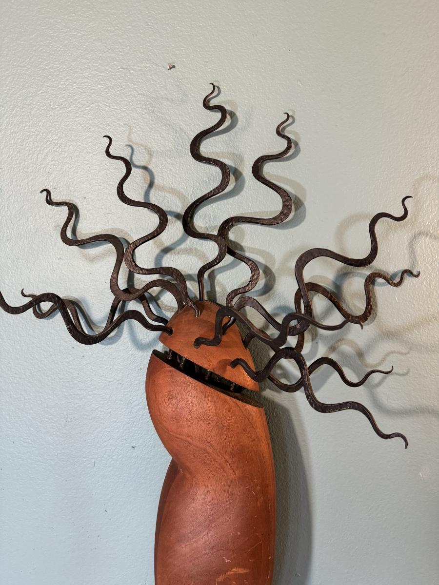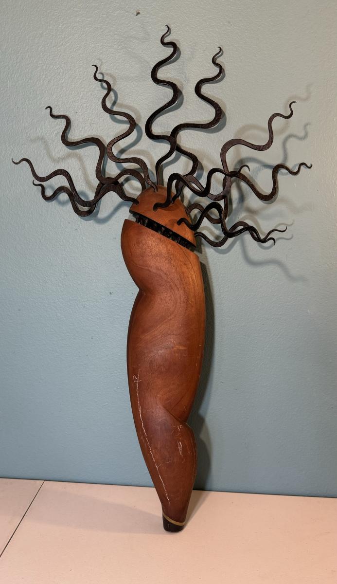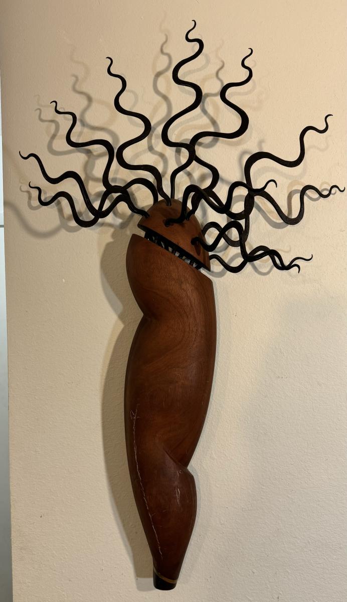 Believed to be made from mahogany or other exotic wood. Hangs on the wall. Measurement: 43"L.