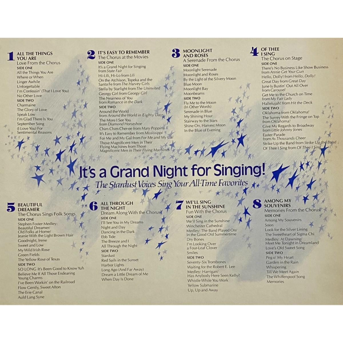 The Stardust Voices - It's A Grand Night For Singing! - Reader's Digest – RDA 136-A, RCA Custom – RDA 136-A. Thank you for looking. As a reminder, if this is a lot, we do not break up lots. Also, all items are prepacked, so each item is sent individually. Any item that qualifies for media mail and weighs over one pound will be shipped via media mail. Otherwise, the item will be shipped USPS ground advantage, or UPS ground. Shipping for this item is $9.00. Items ship within two days after payment is received. Item SKU is Vinyl 79.