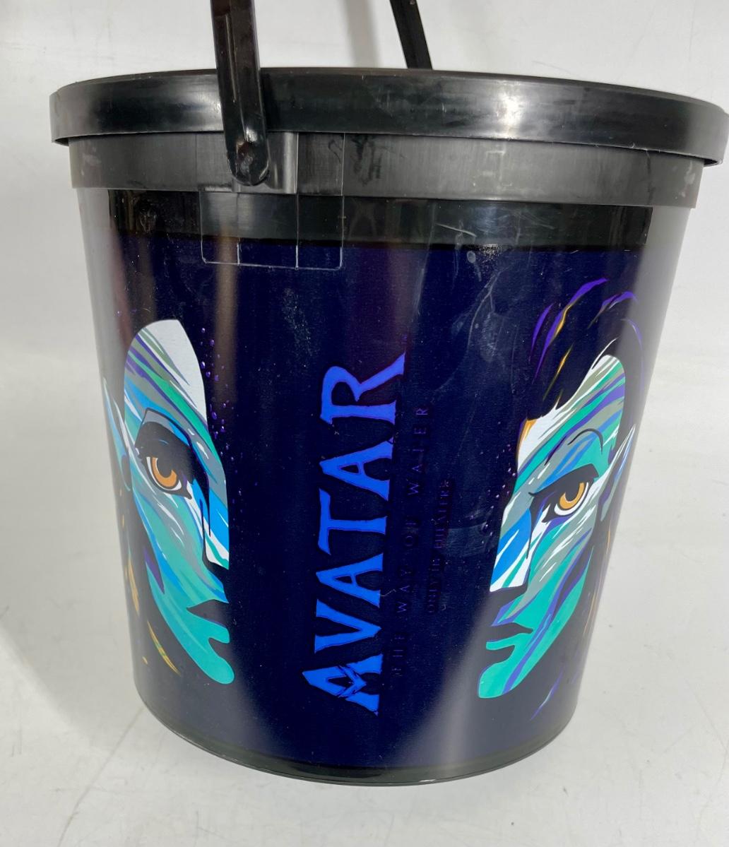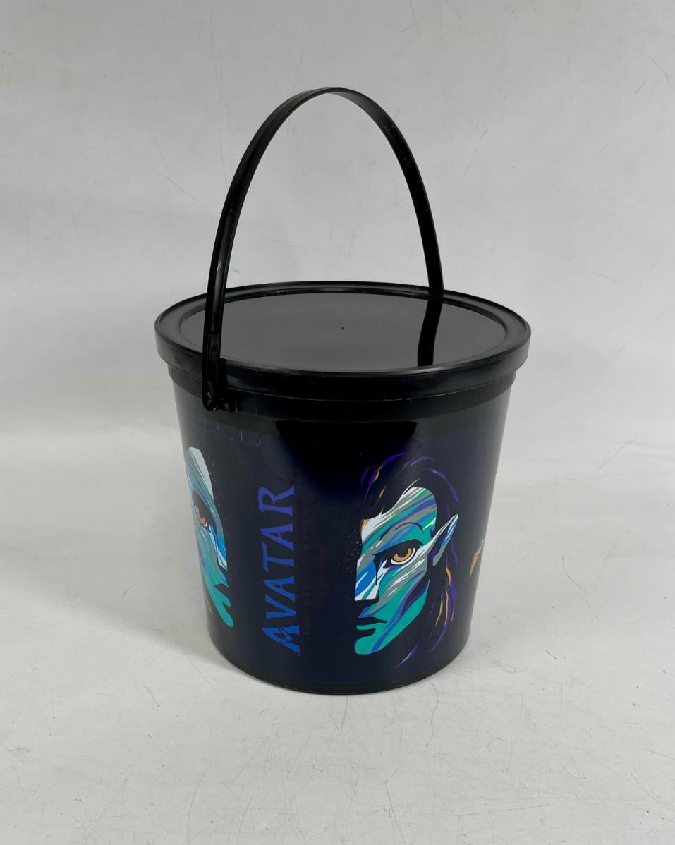 Plastic commemorative popcorn bucket with lid sold at the movie premier at the El Capitan Theater in Hollywood.