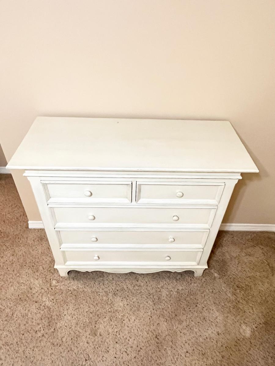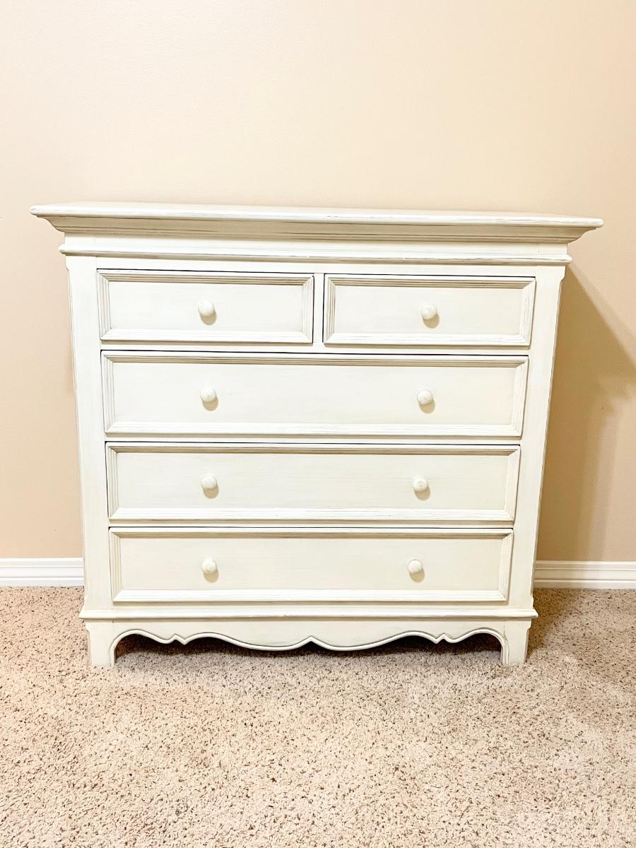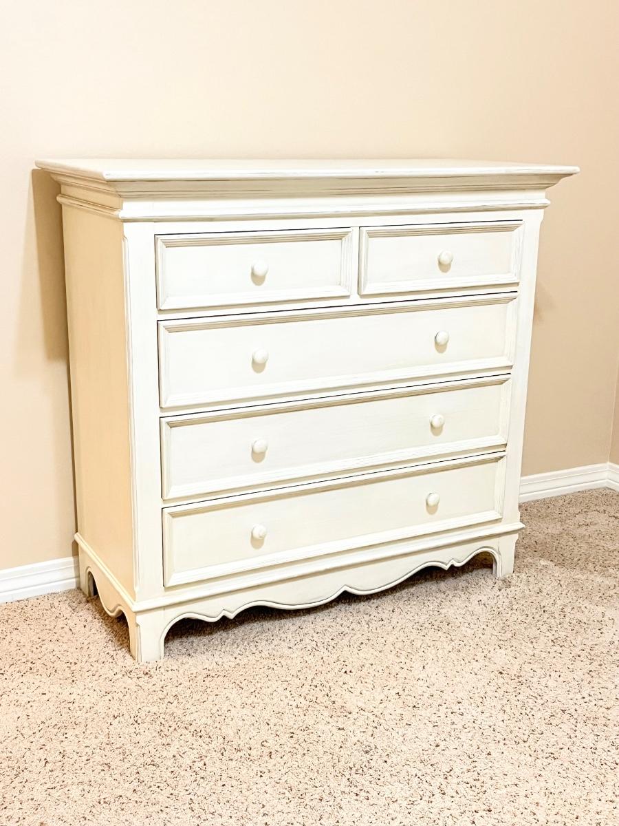 POPCAN INTERNATIONAL ~ Antique White Rustic Solid Wood Five (5) Drawer Dresser