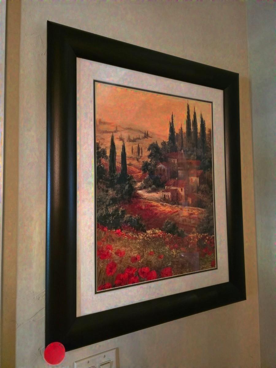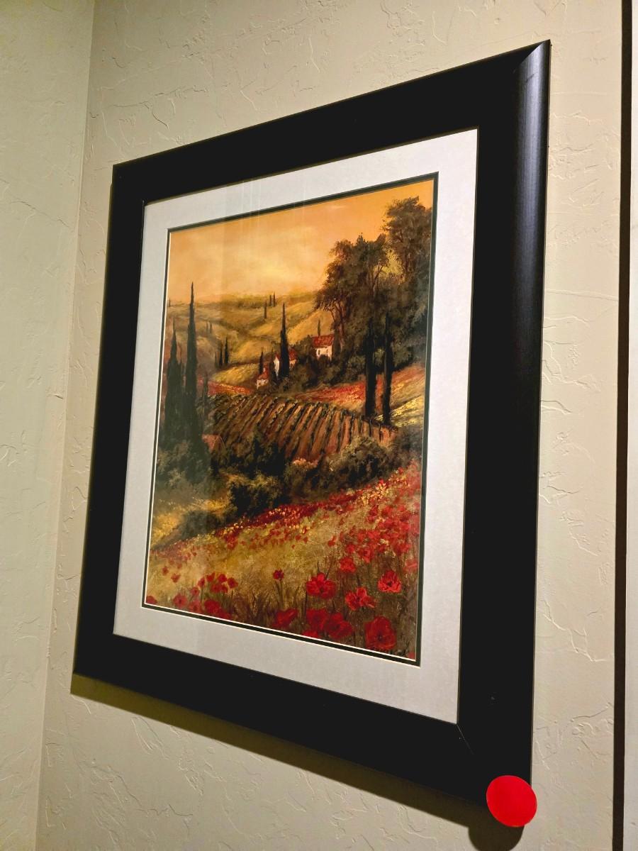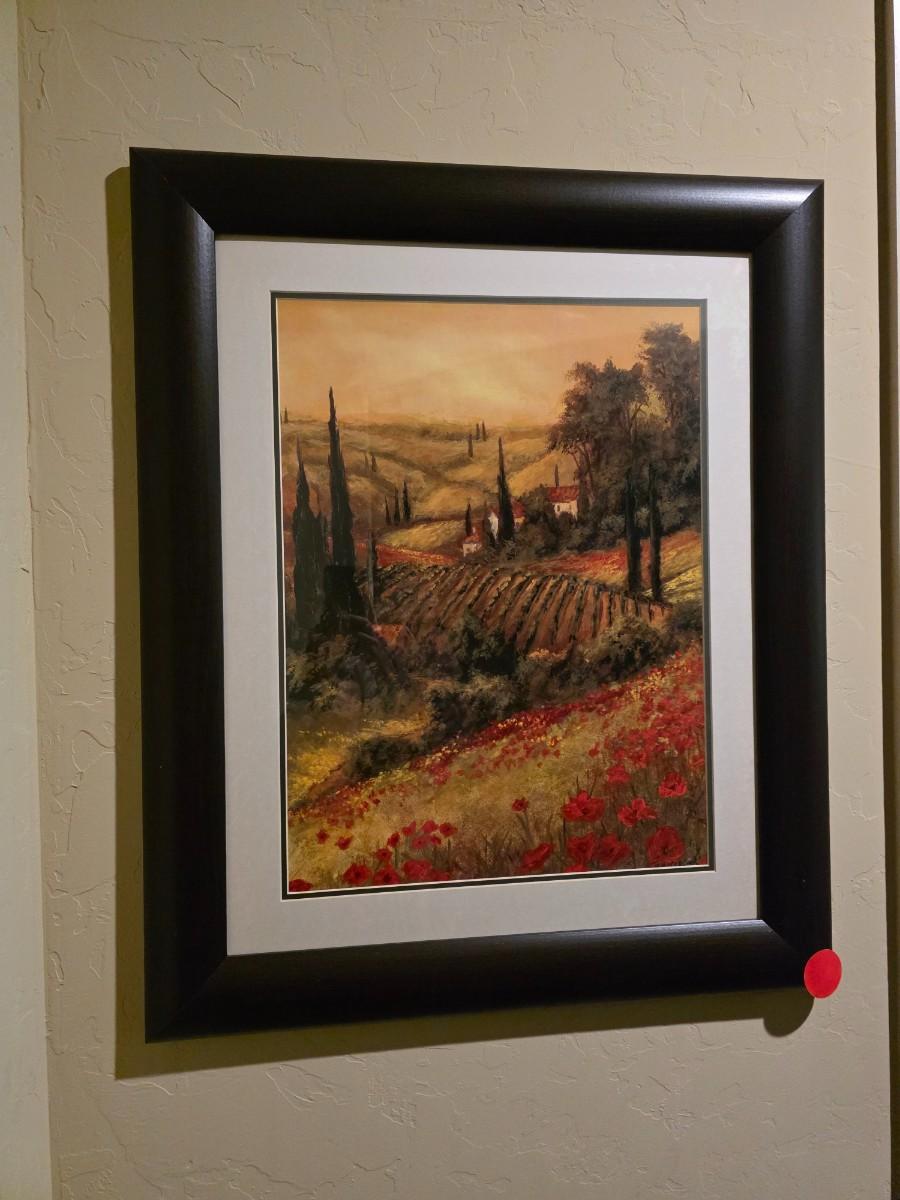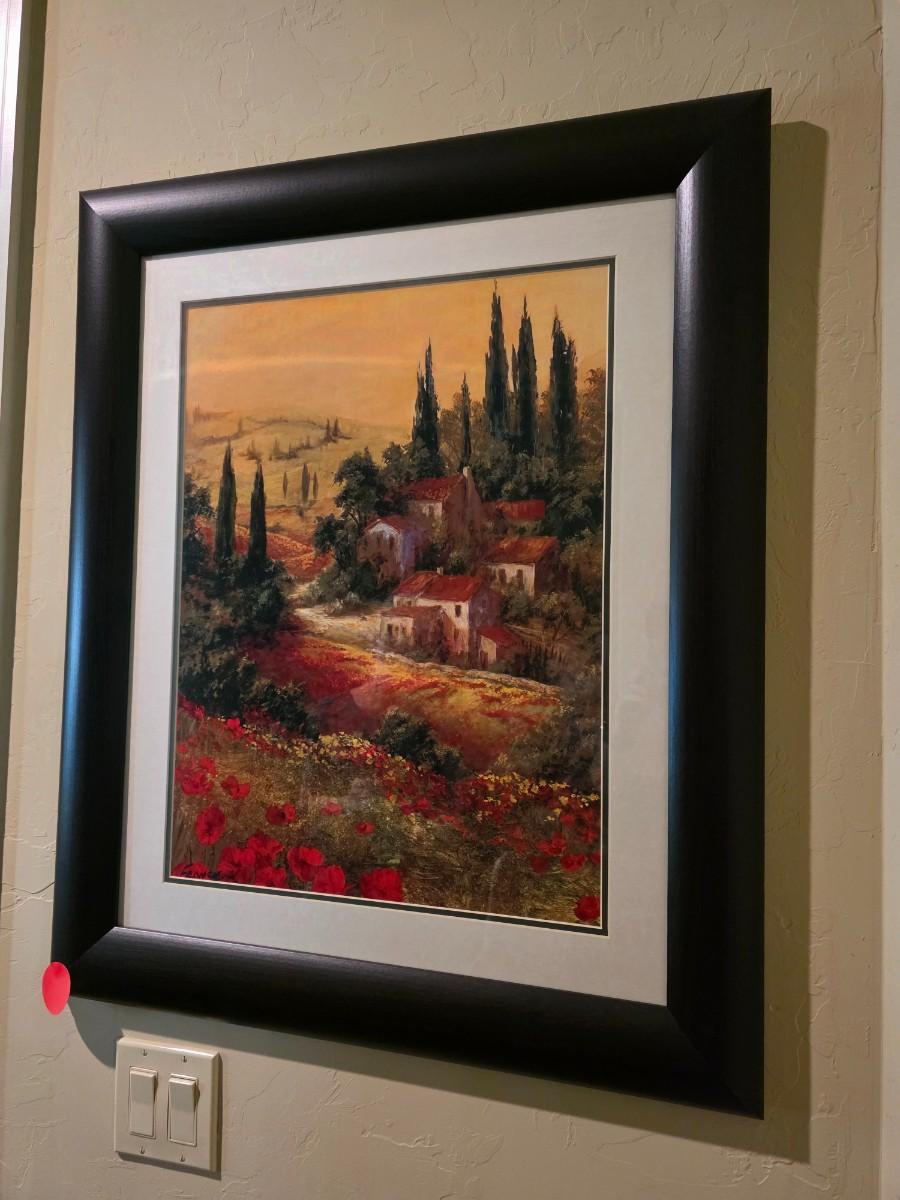 2 Framed art prints: Toscano Valley scenic Italian poppies. Frame measurements are 32"H x 27"W.