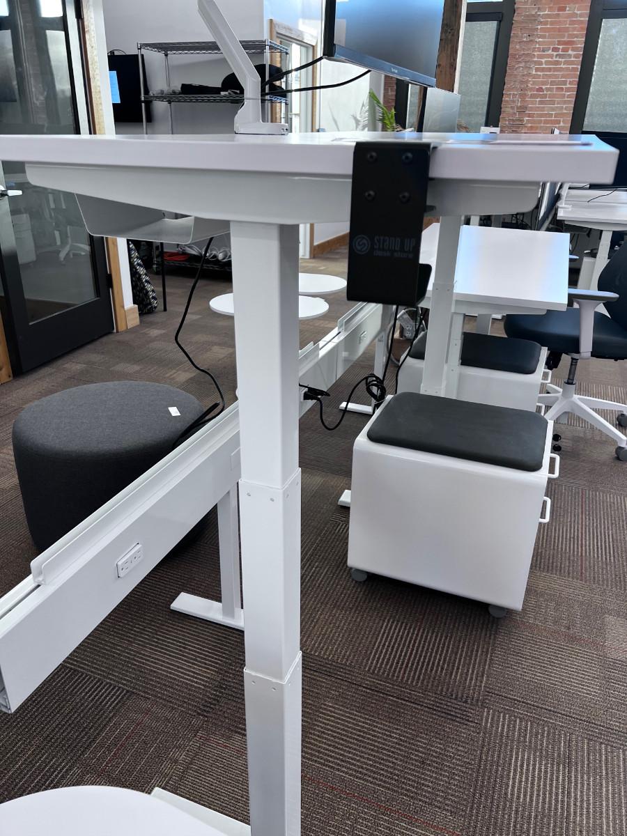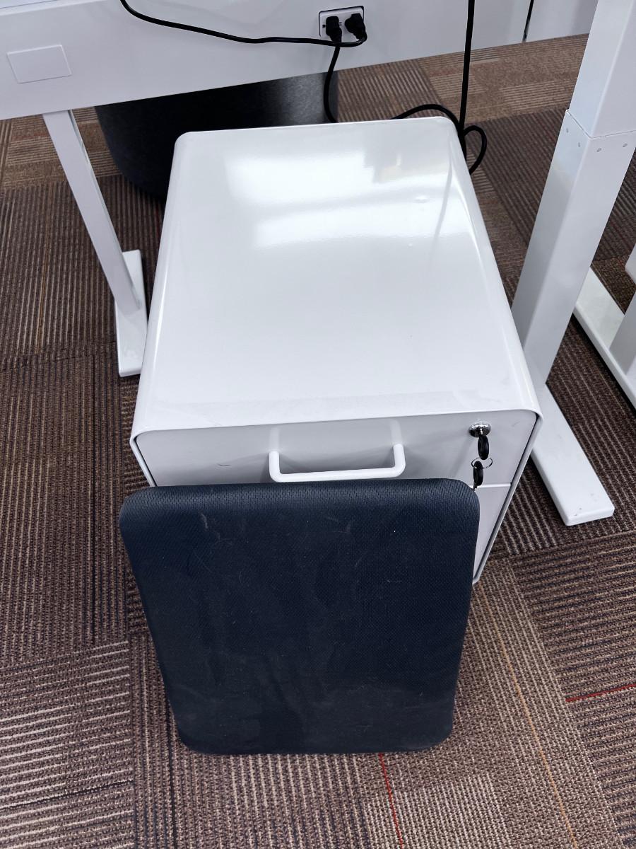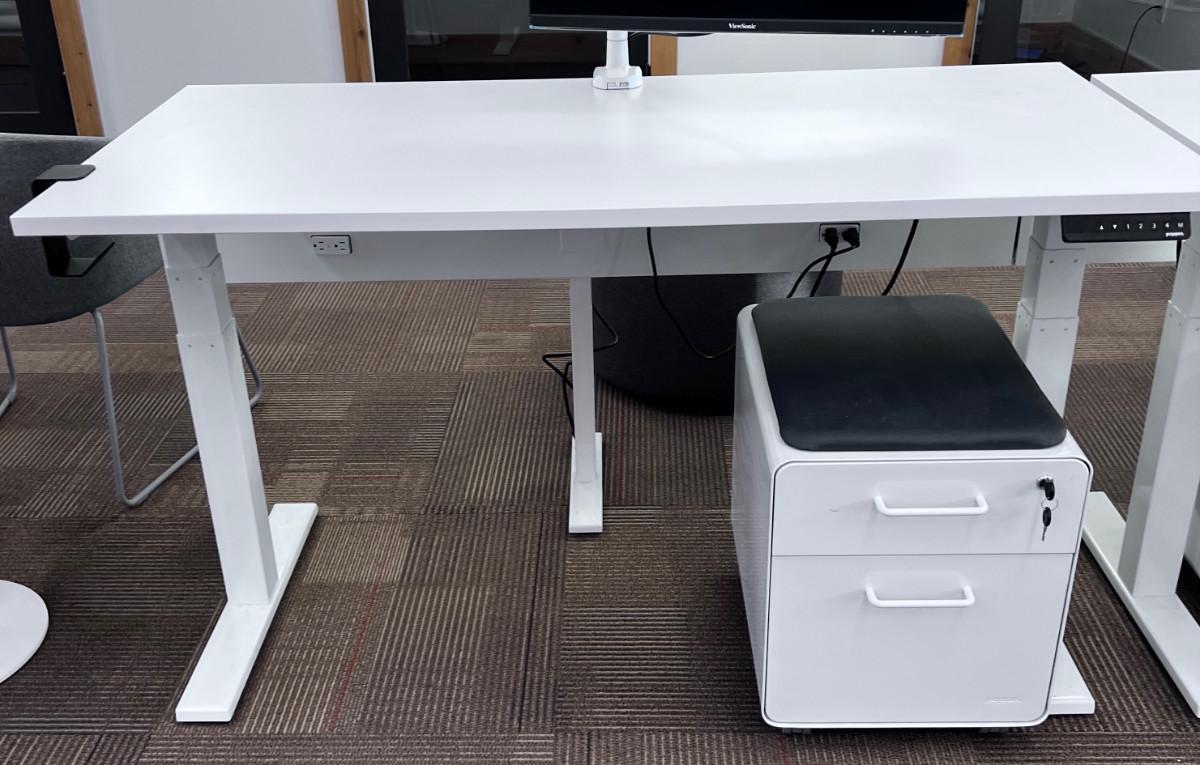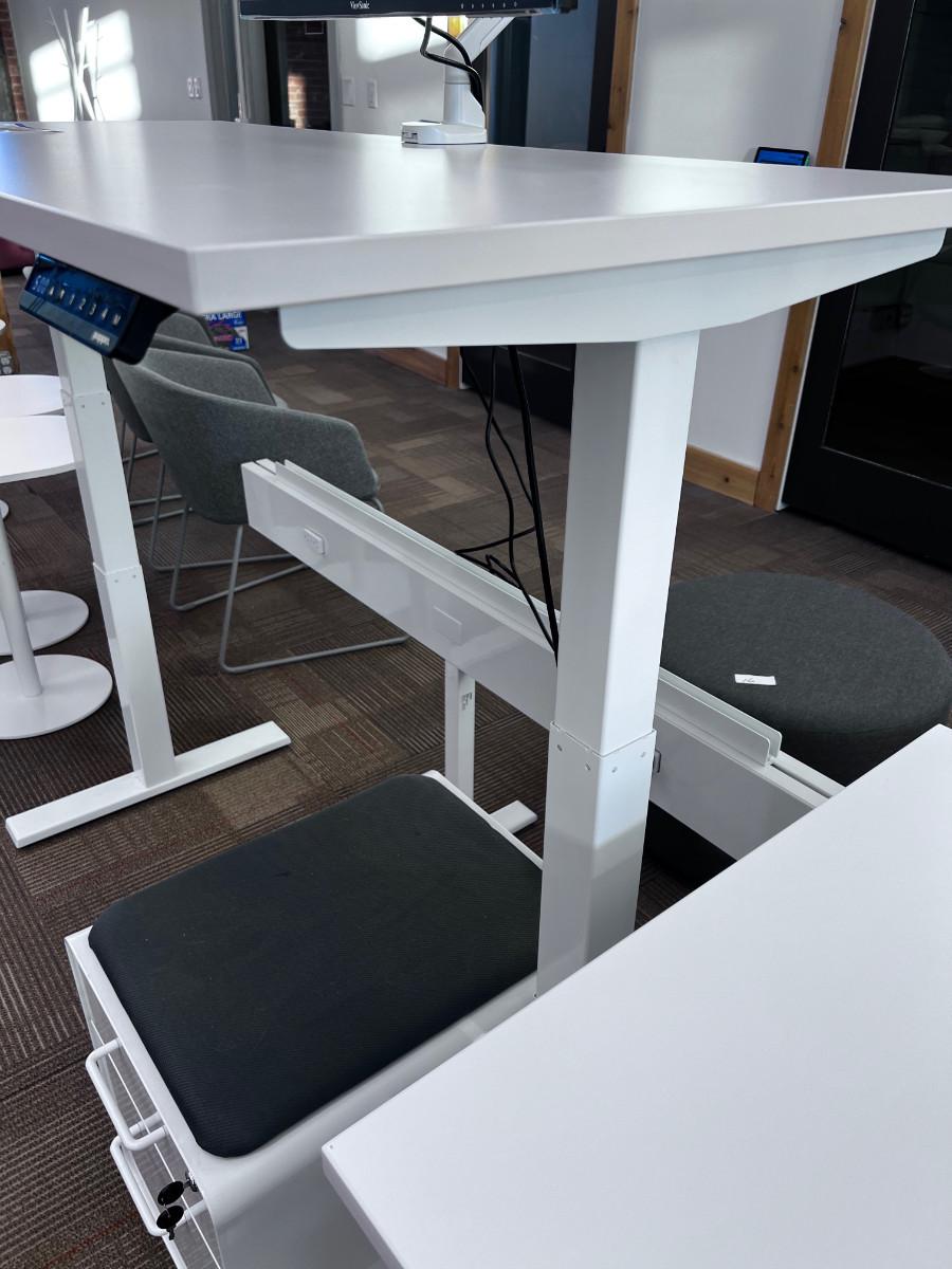 Good Working Condition. Measure 57" X 27" Meant to be standing desks. Lot Includes Mini Stowe Cabinet (2 Drawer) with Magnetic Pad called the Mini Stowe Seat Pad that is usable for a seat. Or Removable Bring Help to move down the Stair from the Second floor. There is no Elevator in this historical building.
