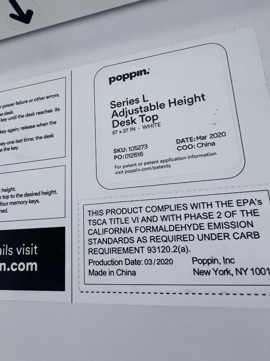 POPPIN Series L Adjustable Height Desk Top, White