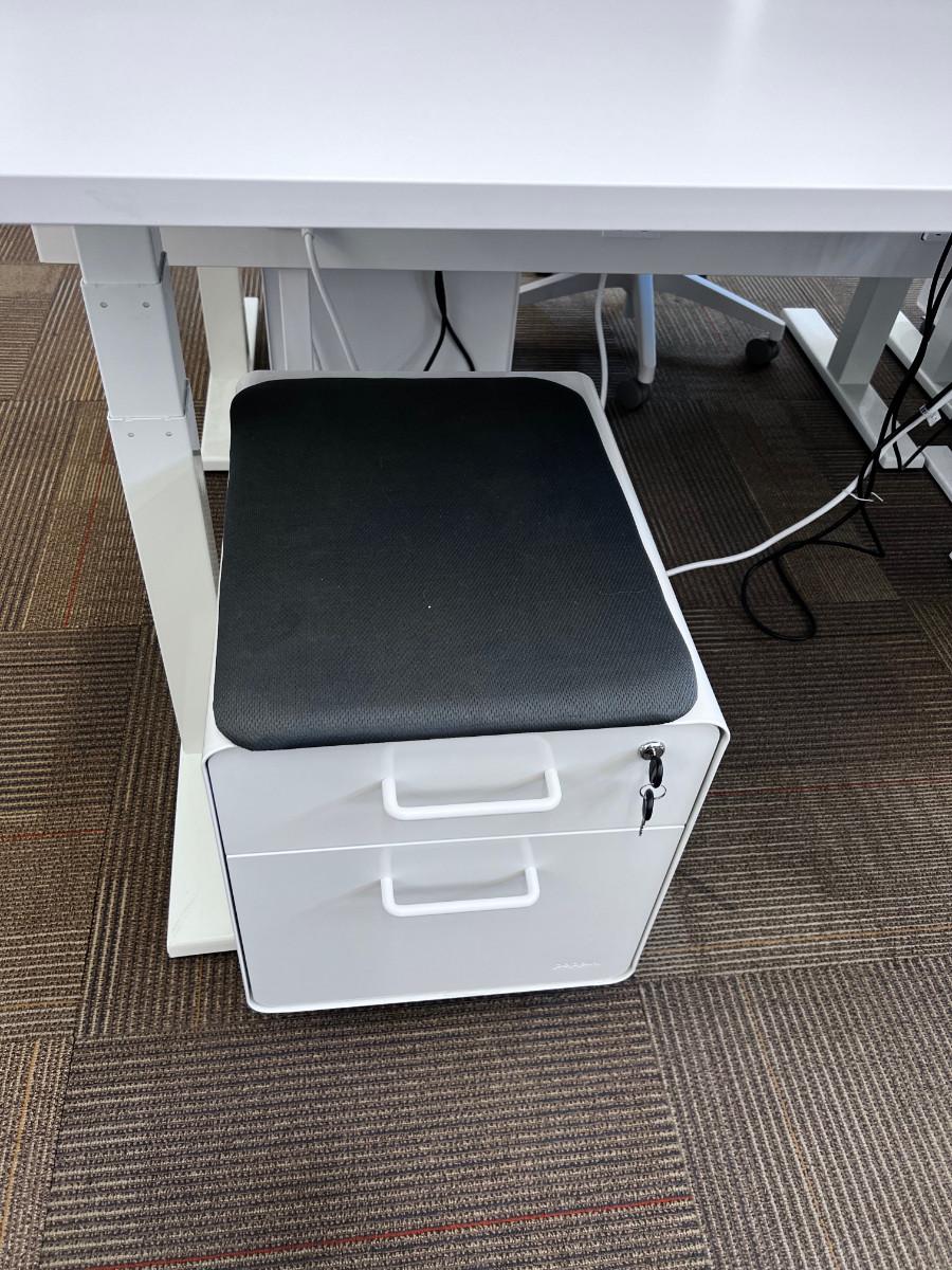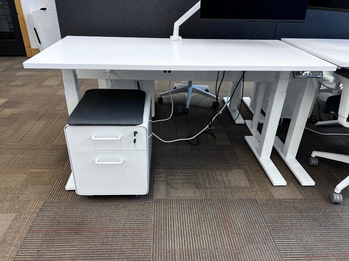 Good Working Condition. Measure 57" X 27" Meant to be standing desks. Lot Includes Mini Stowe Cabinet (2 Drawer) with Magnetic Pad called the Mini Stowe Seat Pad that is usable for a seat. Or Removable Bring Help to move down the Stair from the Second floor. There is no Elevator in this historical building.