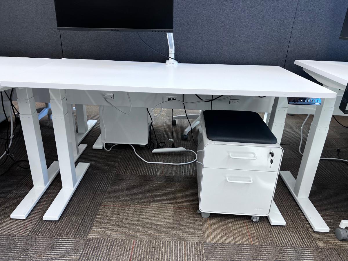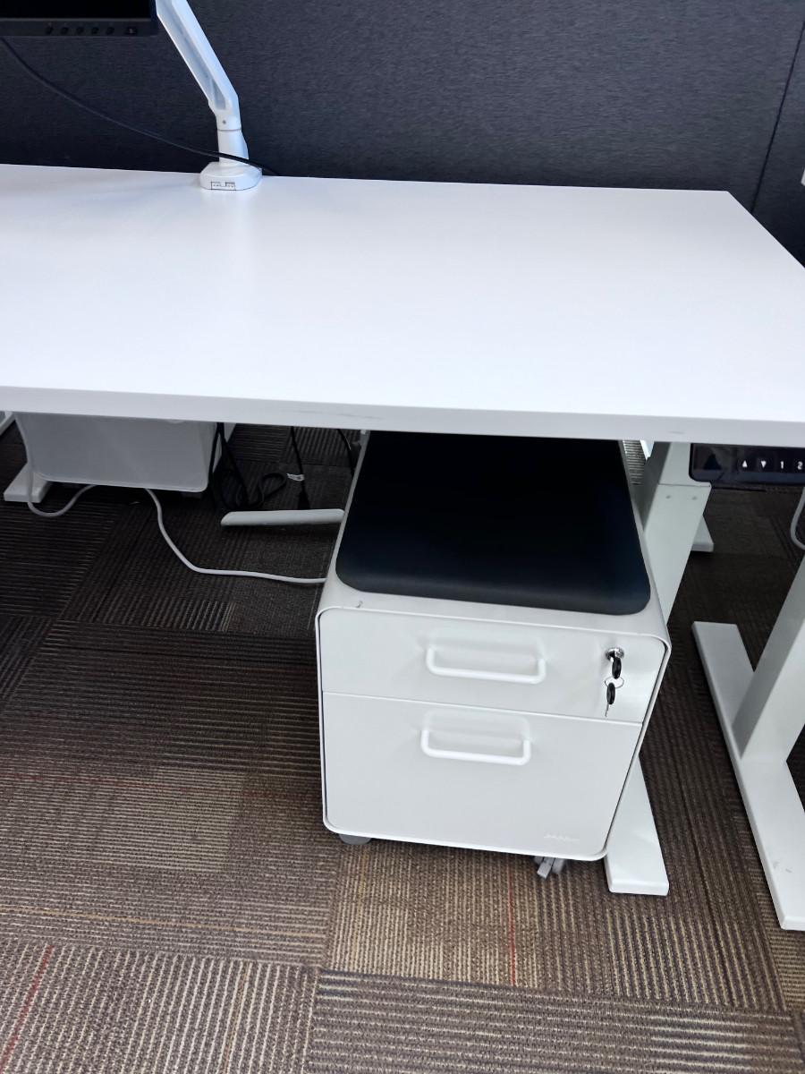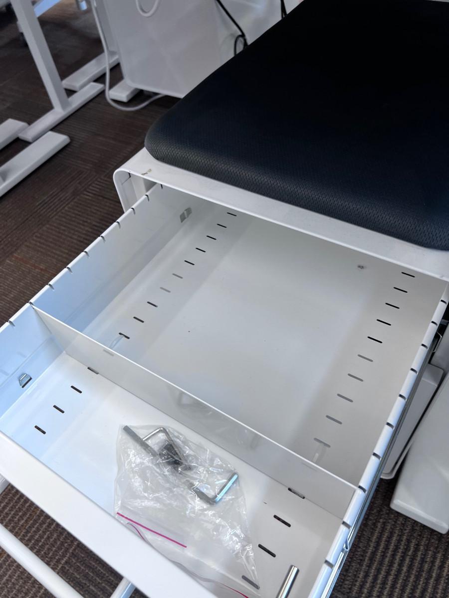 Good Working Condition. Measure 57" X 27" Meant to be standing desks. Lot Includes Mini Stowe Cabinet (2 Drawer) with Magnetic Pad called the Mini Stowe Seat Pad that is usable for a seat. Or Removable Bring Help to move down the Stair from the Second floor. There is no Elevator in this historical building.