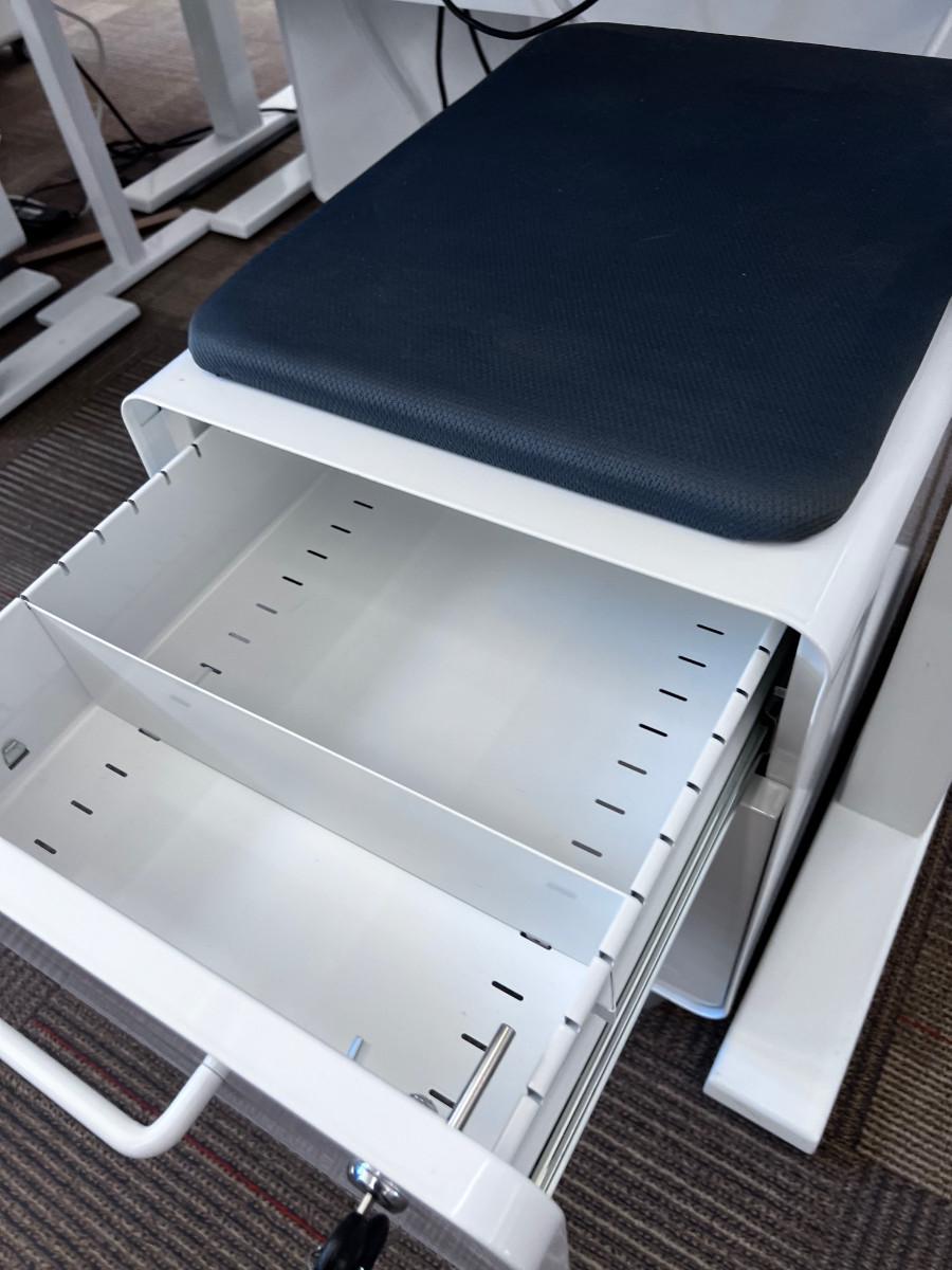 Good Working Condition. Measure 57" X 27" Meant to be standing desks. Lot Includes Mini Stowe Cabinet (2 Drawer) with Magnetic Pad called the Mini Stowe Seat Pad that is usable for a seat. Or Removable Bring Help to move down the Stair from the Second floor. There is no Elevator in this historical building.