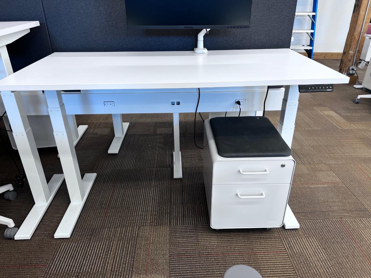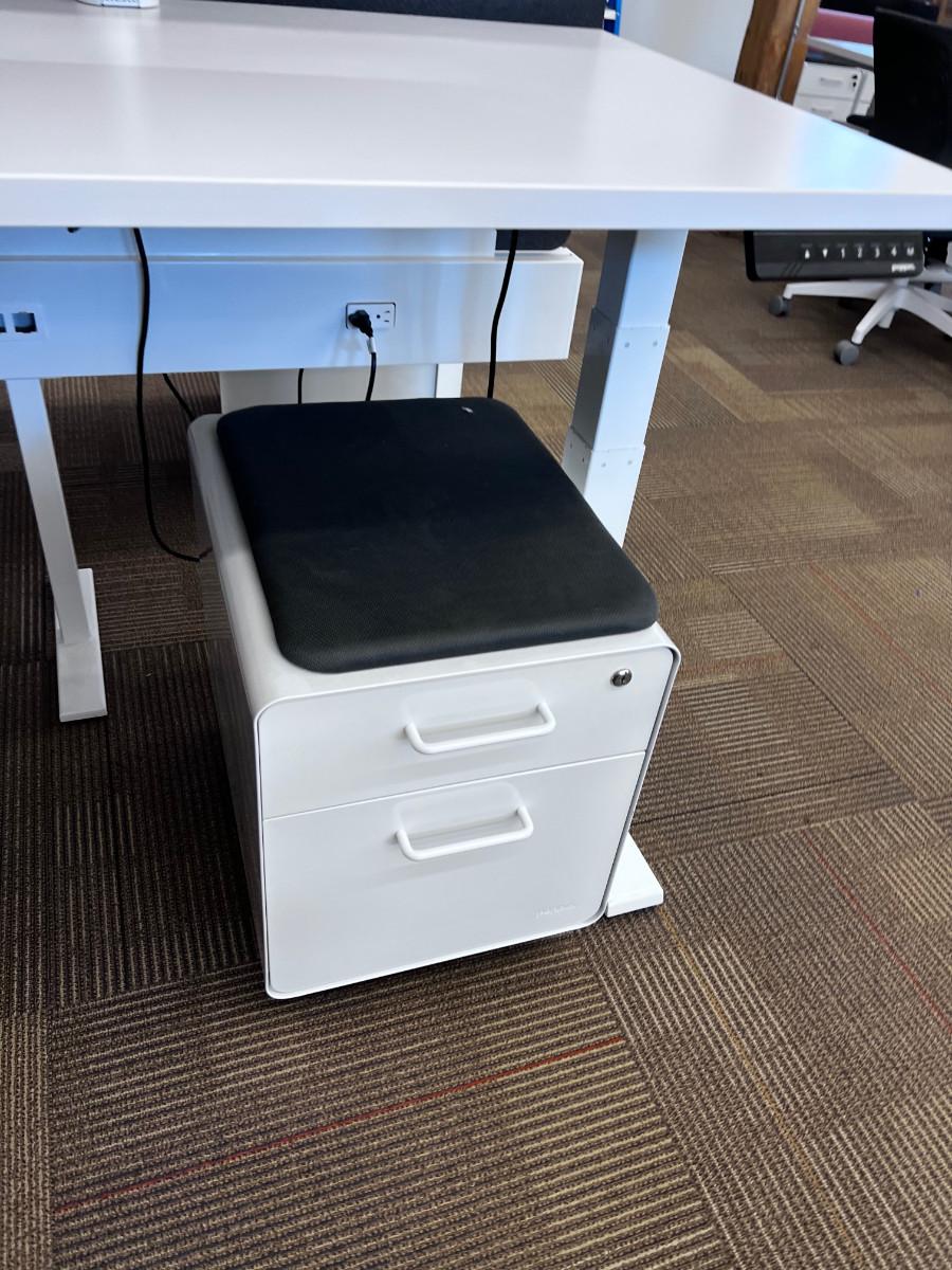 Good Working Condition. Measure 57" X 27" Meant to be standing desks. Lot Includes Mini Stowe Cabinet (2 Drawer) with Magnetic Pad called the Mini Stowe Seat Pad that is usable for a seat. Or Removable Bring Help to move down the Stair from the Second floor. There is no Elevator in this historical building.